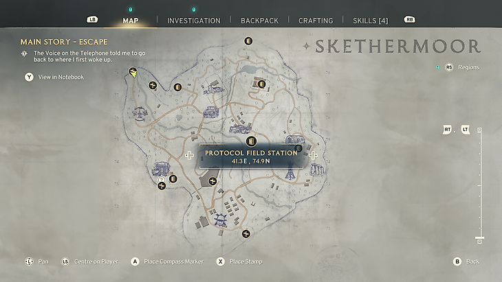 Protocol Field Station – центральный бункер Skethermoor на 41.3E, 74.9N. Содержит много Training Stimulants и Windfall Crate, где можно получить Signal Redirector.