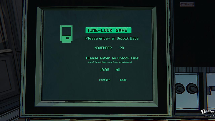 Как найти: взаимодействуйте с терминалом и введите дату и время текущего прохождения. Отсчет дней начинается с 7 ноября (День 1). Время можно определить по большим часам перед особняком или в интерьере.