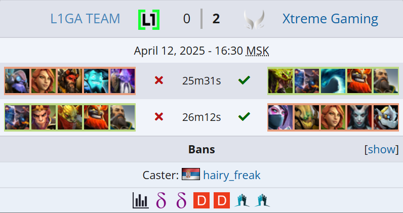- L1ga, сыгравшая в финале виннеров и занявшая по итогу топ-3. Матч из примера про драфты – никак не групповой, а финал верхней сетки.