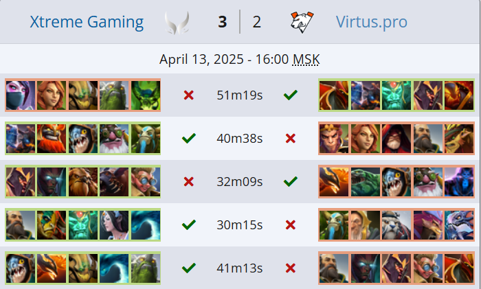 В итоге VP повторно пикнула трех героев из прошлых карт, а Xtreme – четырех.