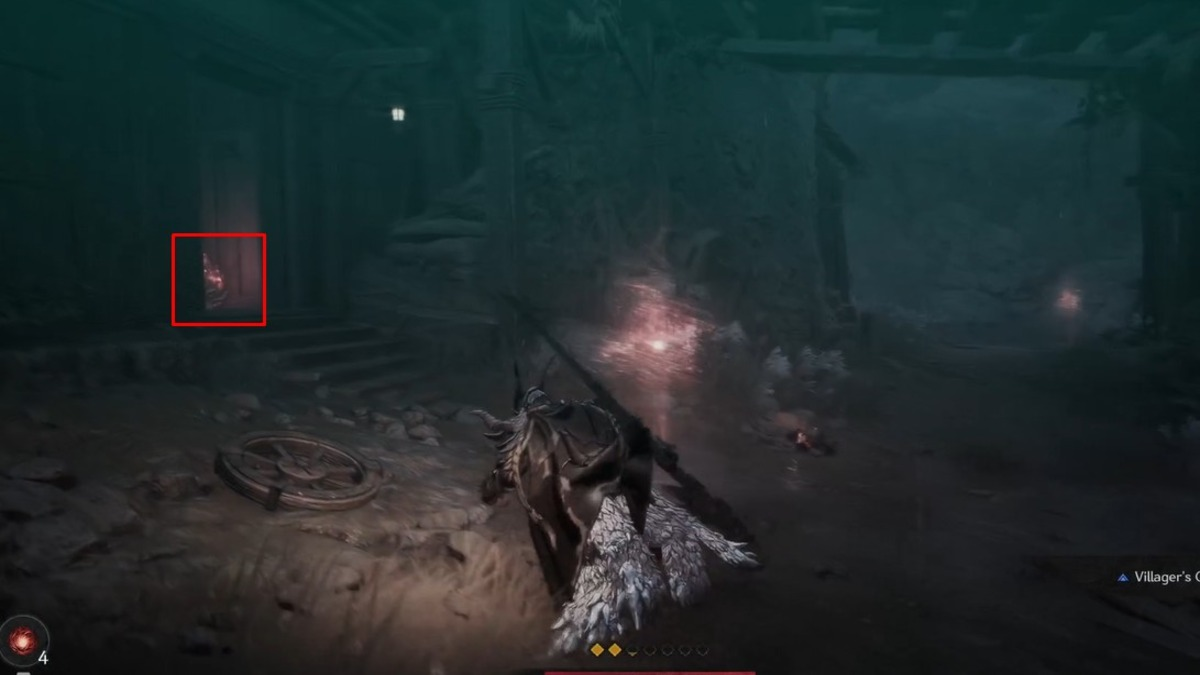 После активации второй точки перемещения продолжайте идти вверх по склону. Перед тем, как пройти под подвесным мостом, где находятся лучники, поверните налево и войдите в открытый дом. Внутри обнаружите камень души.