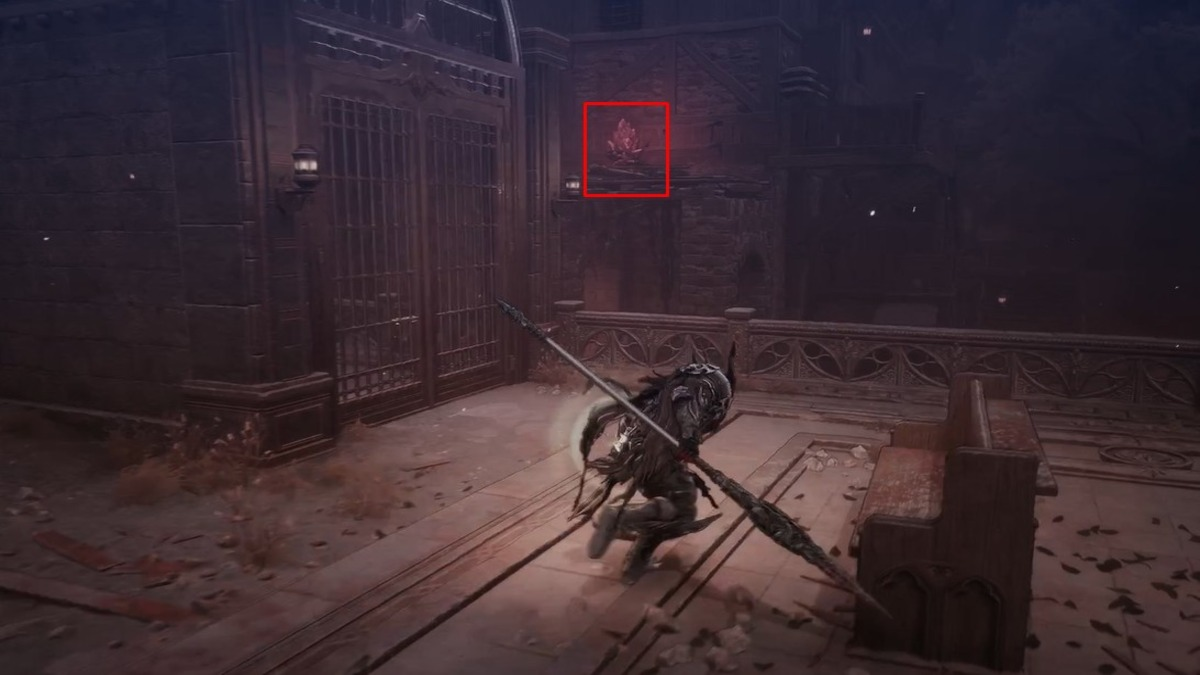 Как только доберетесь до точки перемещения Сада Плюща, идите за угол справа от него. Там будет склон. Посмотрите на стену прямо перед собой, на выступе увидите камень души. Используйте копье, чтобы разбить его.