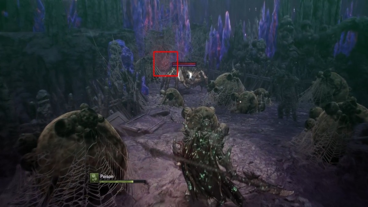 В области справа от дна пещеры спуститесь к ядовитому бассейну. Здесь предстоит сразиться с двумя пауками. Победив их, вы найдете камень души справа в небольшой нише.