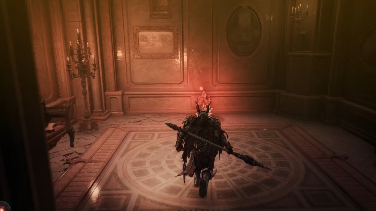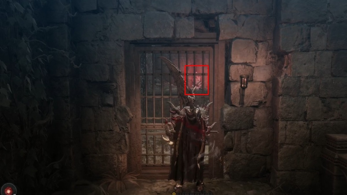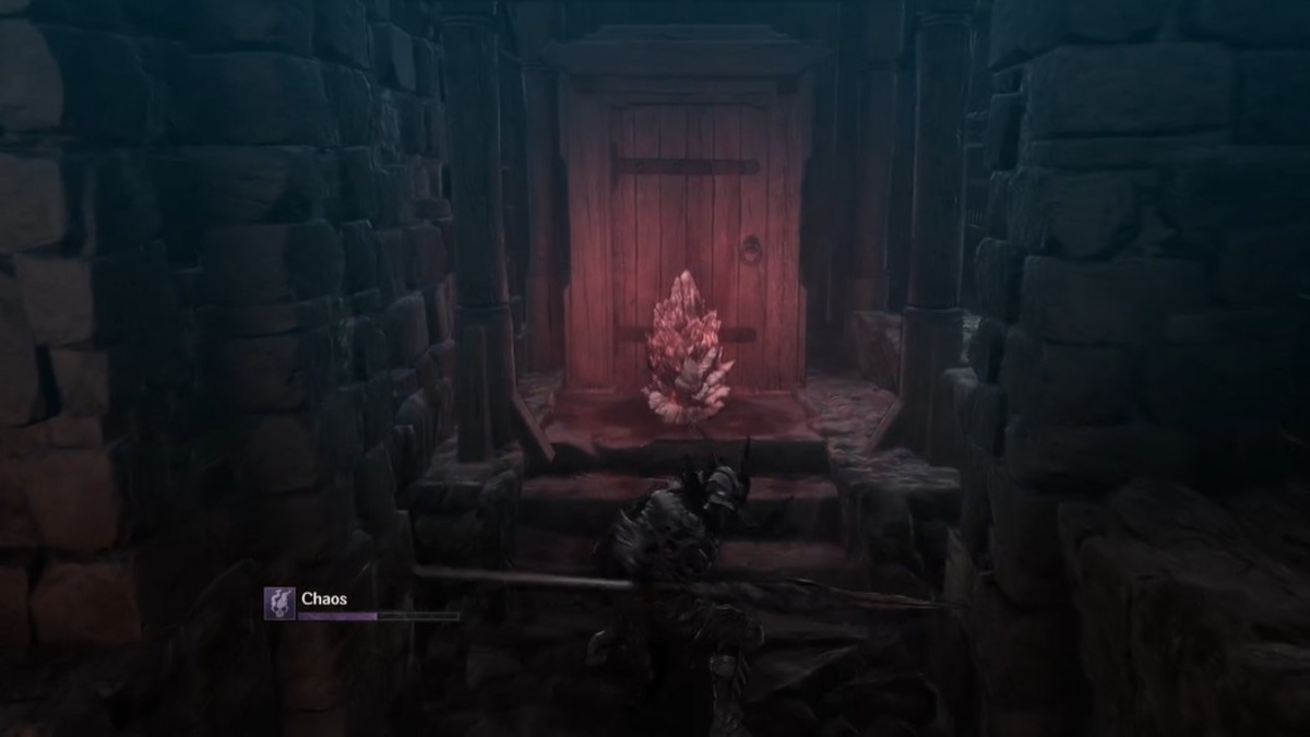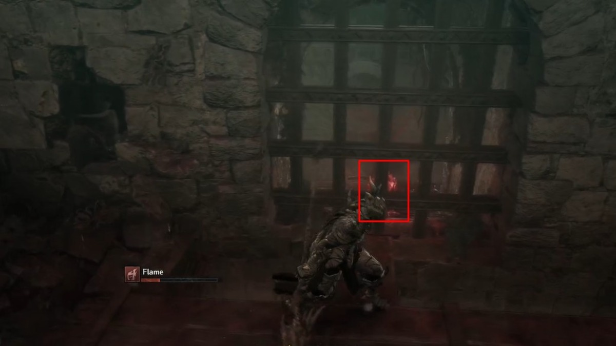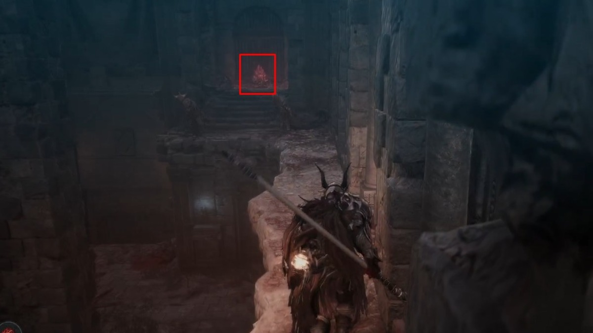 От точки перемещения поверните налево и поднимитесь по лестнице. Поднявшись наверх, убейте двух врагов и гончих, а затем спуститесь по лестнице в здании. В правом углу комнаты обнаружите следующий камень души. Затем можно открыть металлические ворота слева, чтобы сократить путь.