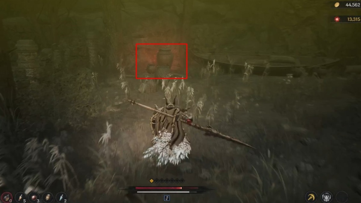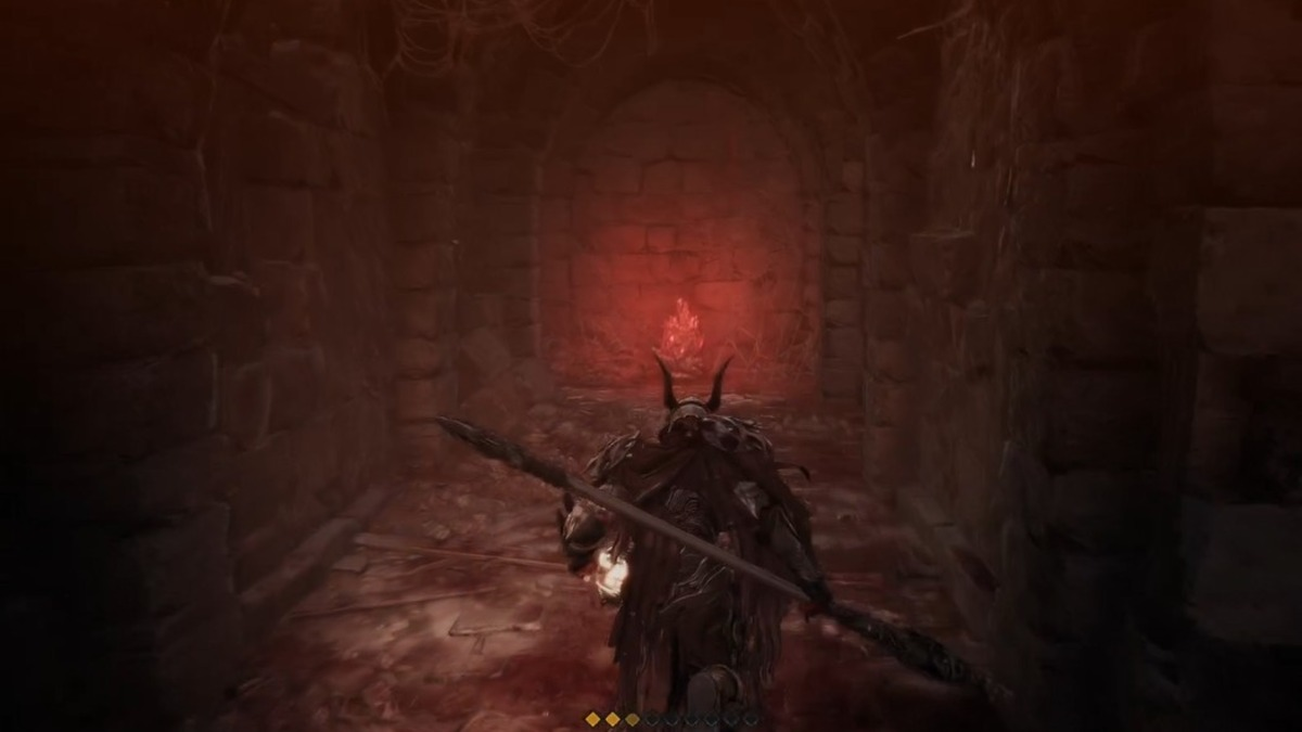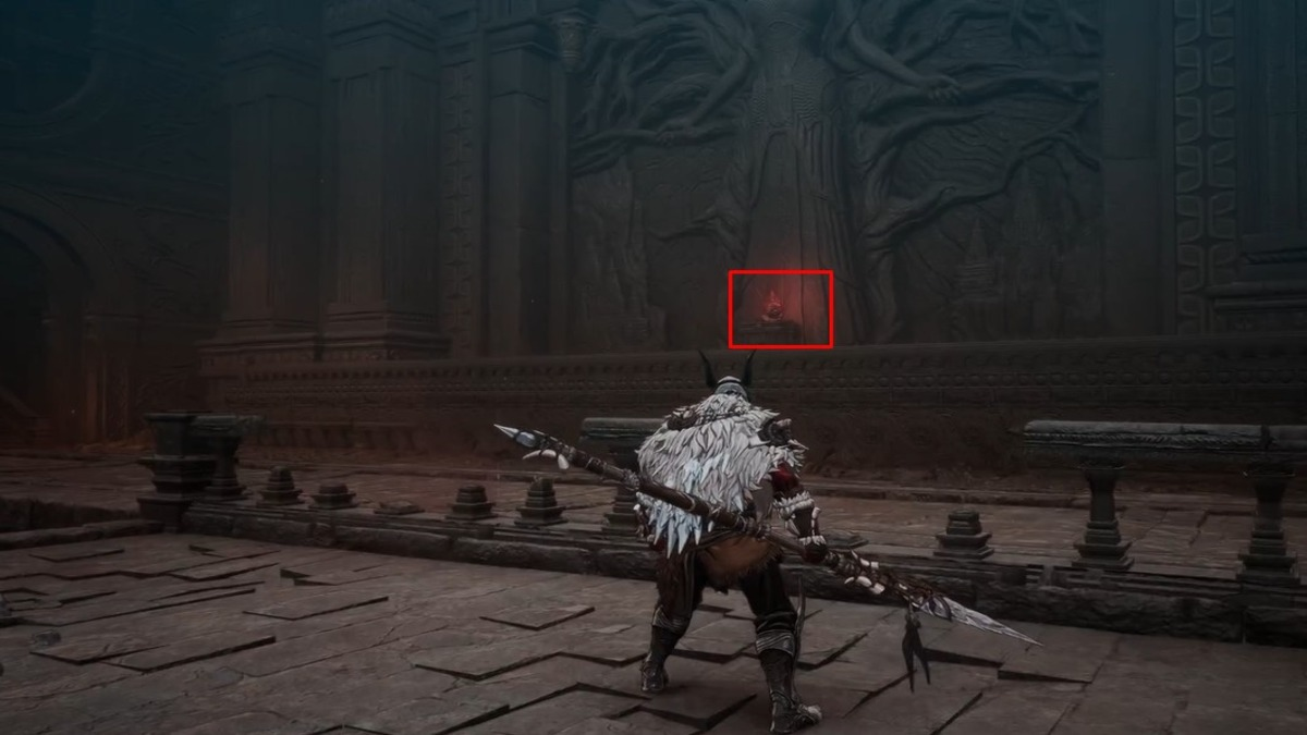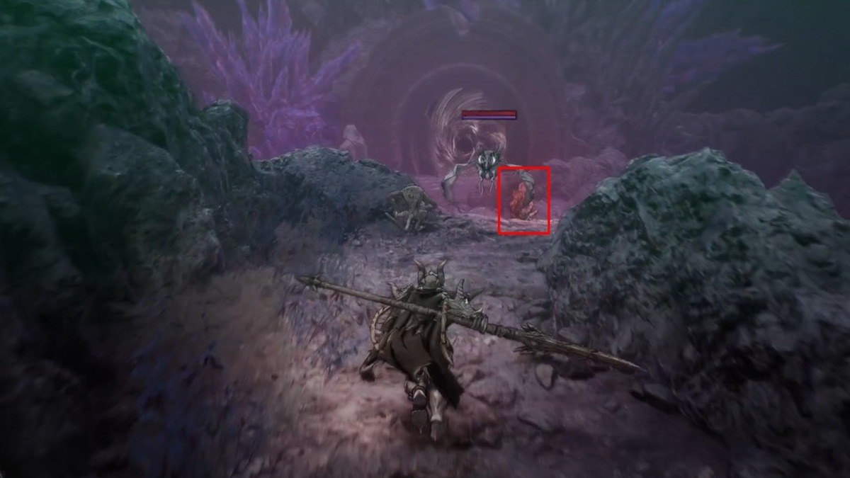 От точки перемещения в Пещере Отшельника пройдите через большую дверь вперед и спуститесь по лестнице. На первом перекрестке следуйте по тропе справа, пока не дойдете до закрытых ворот. Затем поверните налево и поднимитесь по лестнице. Посмотрите направо и увидите камень души на выступе рядом со свечами. Используйте копье, чтобы разбить его.