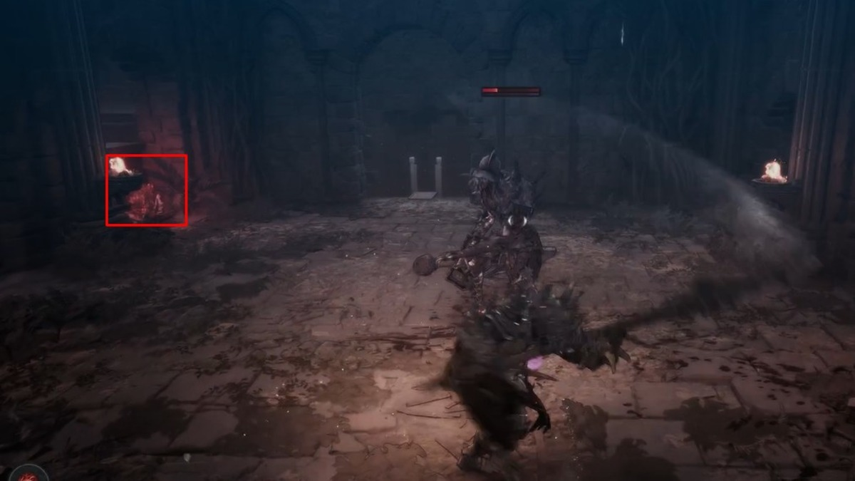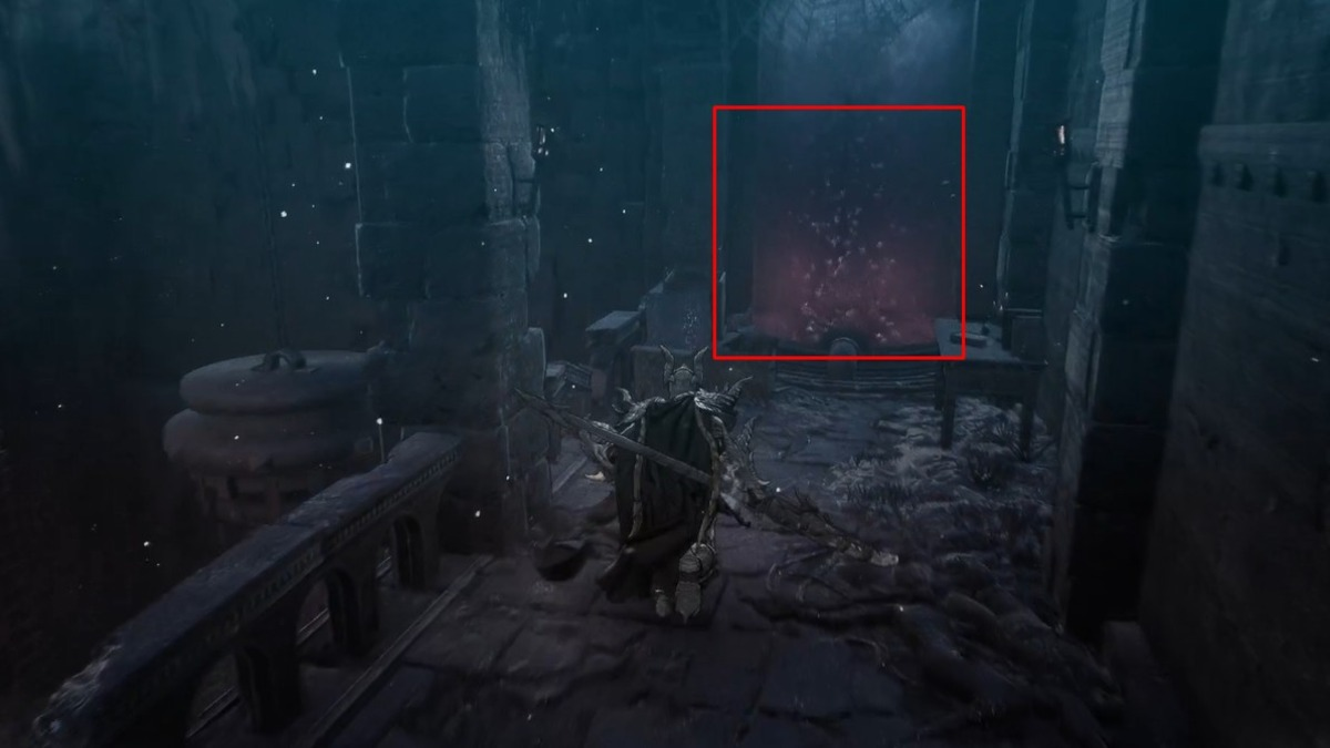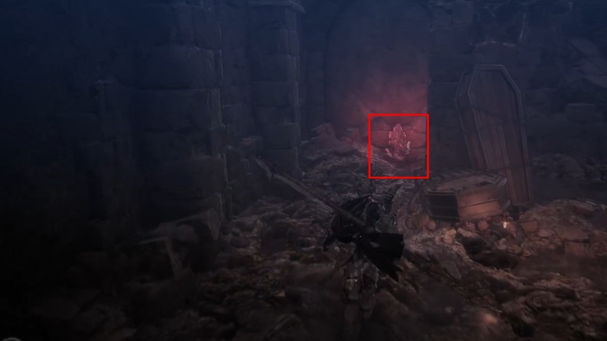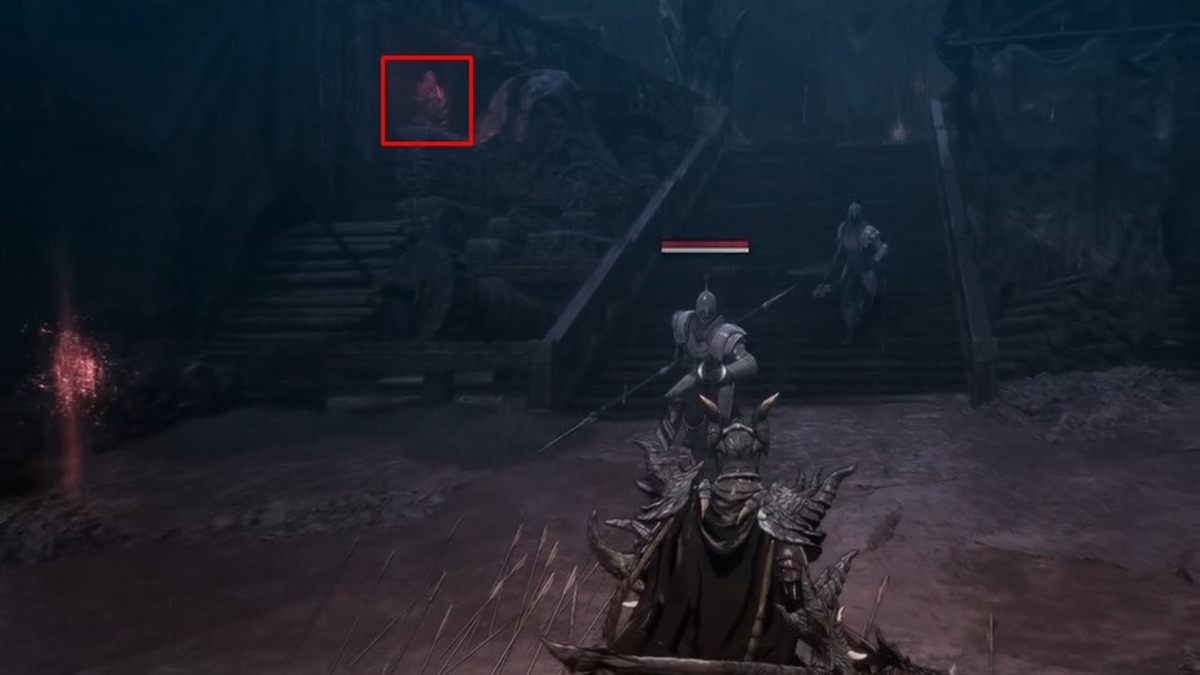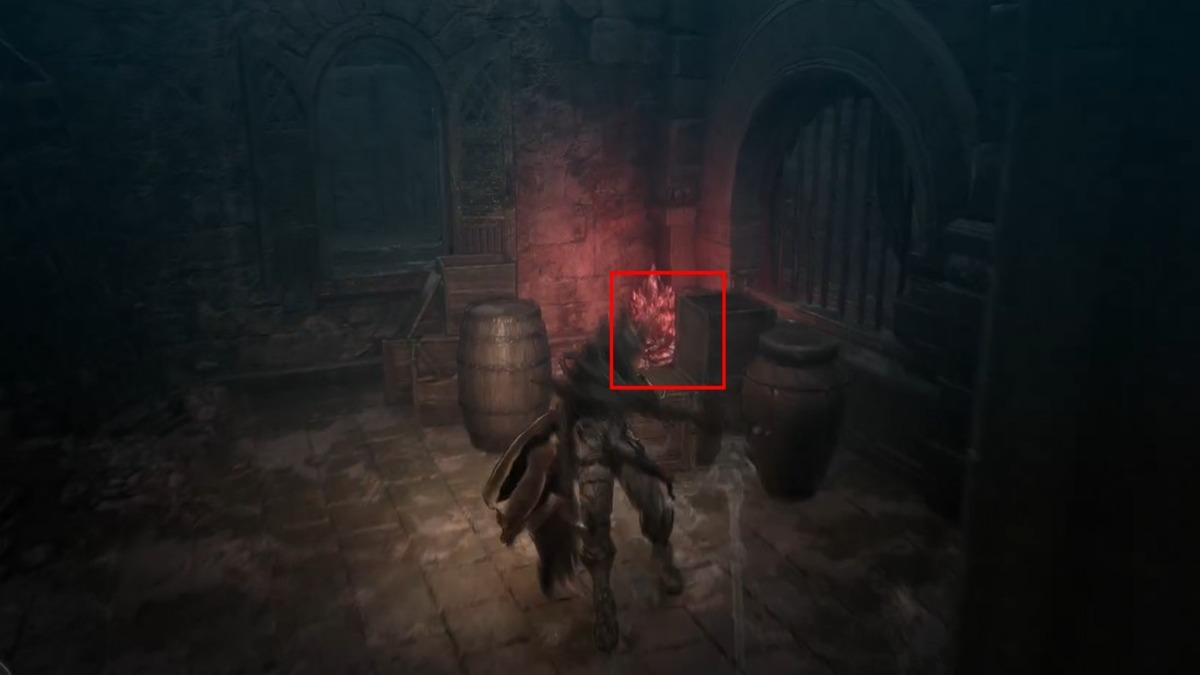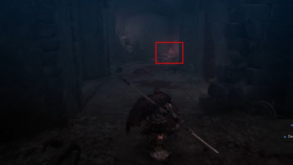 От входа в точку перемещения в Соборе поднимитесь по лестнице и пройдите через большую дверь. Продолжайте идти прямо и поднимитесь по следующей лестнице. Потяните рычаг, чтобы открыть скрытый подземный проход. Спрыгните вниз, следуйте по тропинке вперед, затем на углу поверните налево. Вскоре доберетесь до камня души