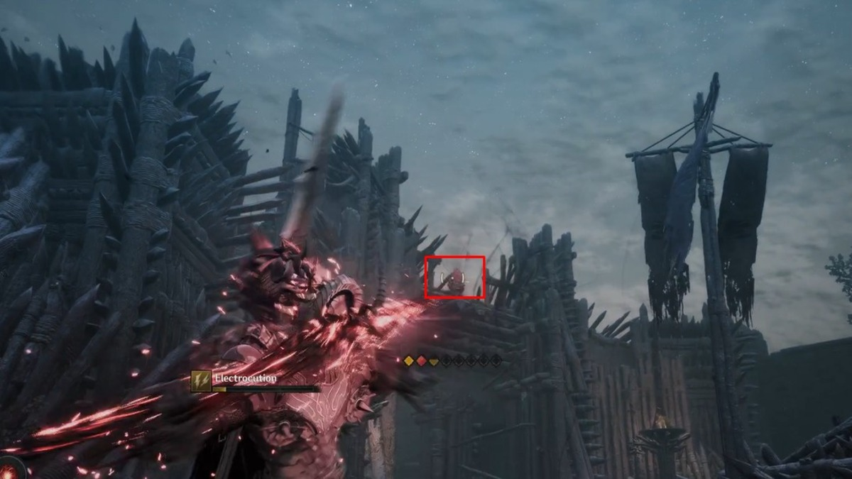 От точки перемещения Разрушенной резиденции посмотрите налево за ворота быстрого доступа. На крыше увидите камень души. Разбейте его копьем или камнем.