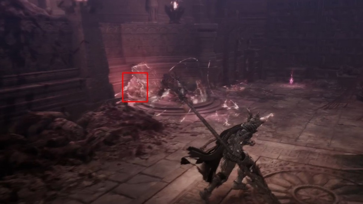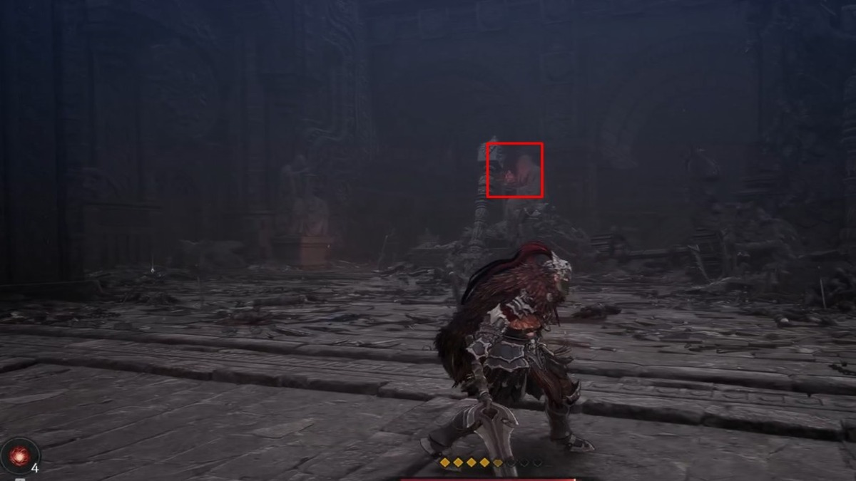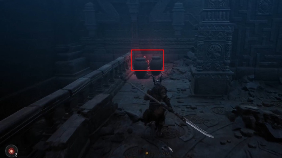 После победы над вторым Элитным Врагом посмотрите налево. Напротив лифта найдете еще один камень души. Разбейте его с помощью копья.