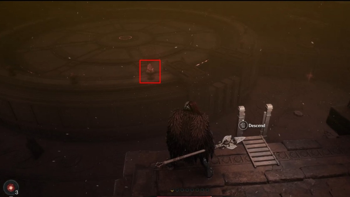 После встречи с неигровым персонажем Анделлом спрыгните вниз и спуститесь по лестнице. Осторожно переходите с платформы на платформу в самый низ. Оттуда поверните налево и поднимитесь по лестнице. Далее следуйте по тропинке слева, по пути сражаясь с врагами. Когда окажетесь в самом низу подземелья, прежде чем войти в лифт, посмотрите налево. За ним увидите камень души, который нужно разбить, бросив в него копье.