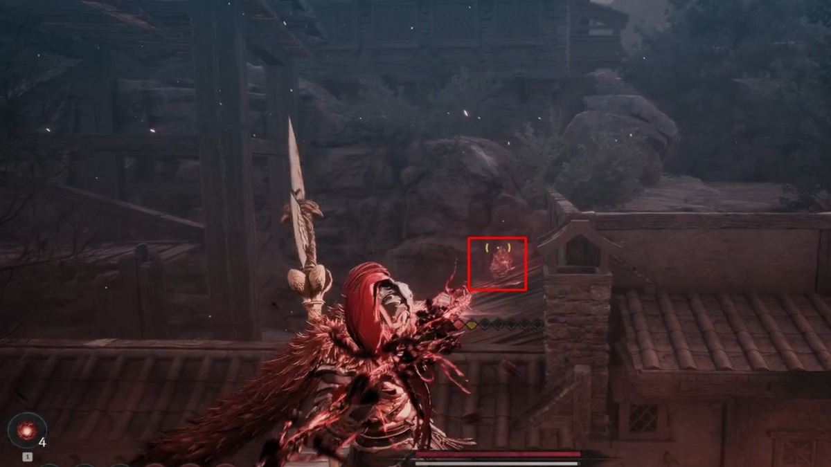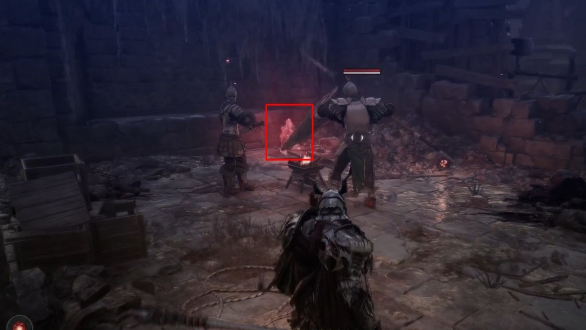 Первый Камень Души можно найти сразу после точки перемещения Пылающего Города. Оттуда идите прямо, минуя врагов, и поднимитесь по лестнице на крышу дома в углу слева. За лестницей на крыше находится камень души. Его можно разбить атакой с дистанции.