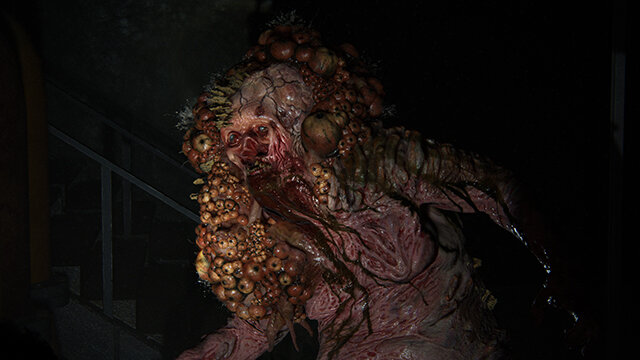 Щелкун – третья стадия заражения кордицепсом. Они появляются примерно через год после инфицирования, когда грибок полностью срастается с телом. Самые узнаваемые и пугающие монстры вселенной. Вместо лица – массивный грибковый нарост, череп расколот, глаз нет.