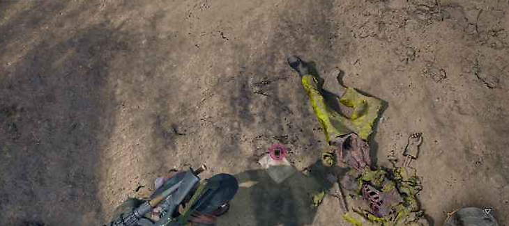 - Места, относящиеся ко второму типу – точки исследования, которые могут находиться за небольшими возвышенностями. Чтобы добраться до них, вам понадобится мотоцикл Дикона с ускорителем. Осмотрите местность вокруг места проведения исследования и найдите подходящее место для прыжка. Убедитесь, что вы разогнались на мотоцикле и активировали ускорение, чтобы безопасно перепрыгнуть через пропасть. Также вы увидите контейнер с инъекцией.