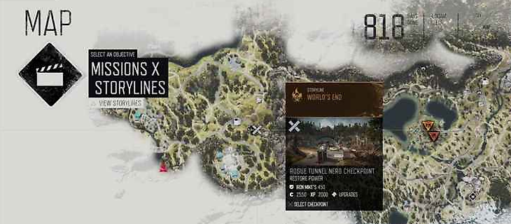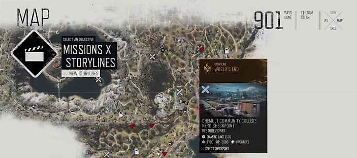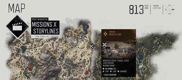 - 2097 – на юге, в Каскады, требует мотоцикл с нитро;