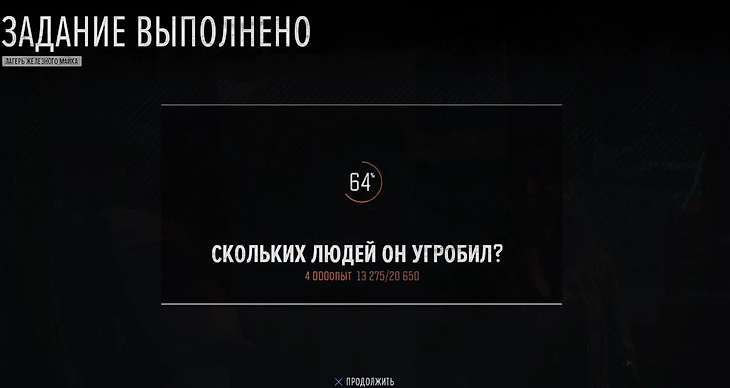 За прохождение дополнительного задания вы получите 4000 единиц опыта, 7000 единиц доверия и 1900 кредитов. 4000 опыта не привязаны к конкретной локации. Их можно использовать для совершенствования навыков. Остальную награду можно потратить только в лагере Железного Майка – повысить уровень доверия, купить товары у торговцев.