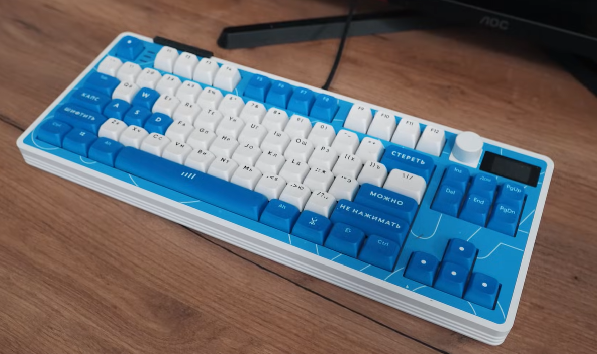 Вот так выглядит клавиатура Ростика. Это лимитированная линейка игровой периферии для стримеров от Yota и Dark Project, которая не продается.
