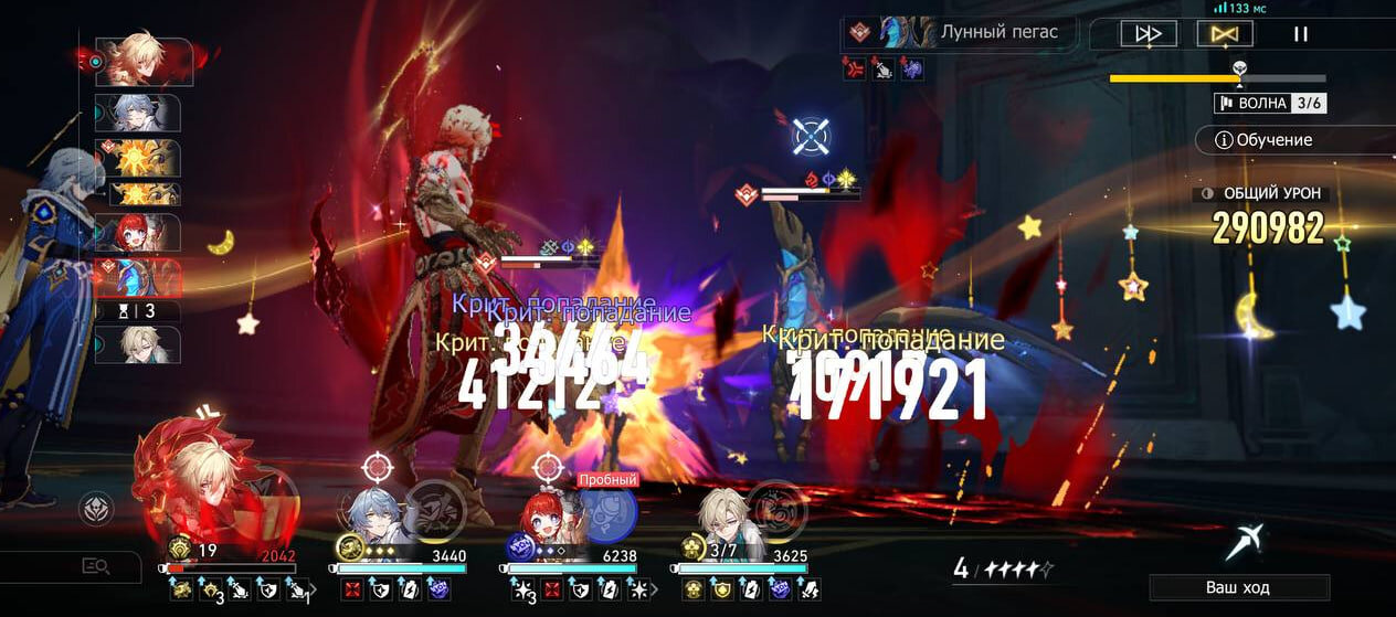 На этом этапе стоит брать всех, у кого АоЕ-навыки и сверхспособности. Возьмите к Анаксе прокачанного героя Эрудиции – Герту, Герту поменьше, Яшму, Аргенти, Химеко. В качестве саппорта возьмите Трибби – она наносит урон по всем врагам бонус-атакой. Хилерами могут быть Линша и Лоча. Это нужно для того, чтобы убивать всех врагов одновременно – они застынут в анабиозе, пока вы их не добьете.