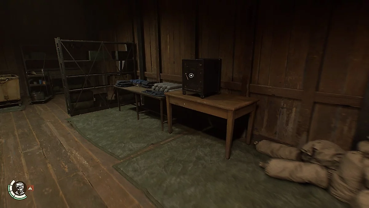 Когда вы доберетесь до нацистского комплекса с офисом профессора Васса, на первом этаже в задней комнате вы обнаружите сейф с пятиместной кодовой комбинацией. Чтобы открыть его, нужно будет найти записку на письменном столе офицера этажом выше, где будет указан код. В сейфе вас ждет золотой слиток, древняя реликвия и пистолет – дополнительное оружие, которое можно использовать или оставить.