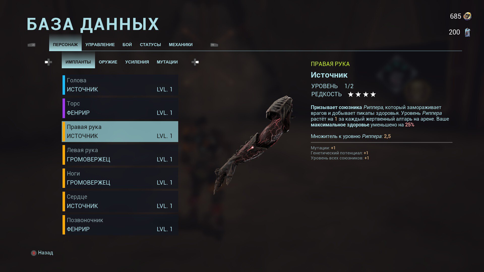 Впрочем, без разнообразия устанешь даже от самой зрелищной боевой системы, так было со мной к финалу каждой части Batman: Arkham. Тем временем каждый забег в «Киборге» уникален. Вы начинаете практически голым, но со временем обзаводитесь имплантами. В награду за прохождение арены с неба падает ящик с модификацией. Она добавит герою руку с электрическим ударом, сердце с эффектом регенерации или металлические ноги, поджигающие землю после рывка. Имплантов десятки, и и их комбинации создают улетные билды.