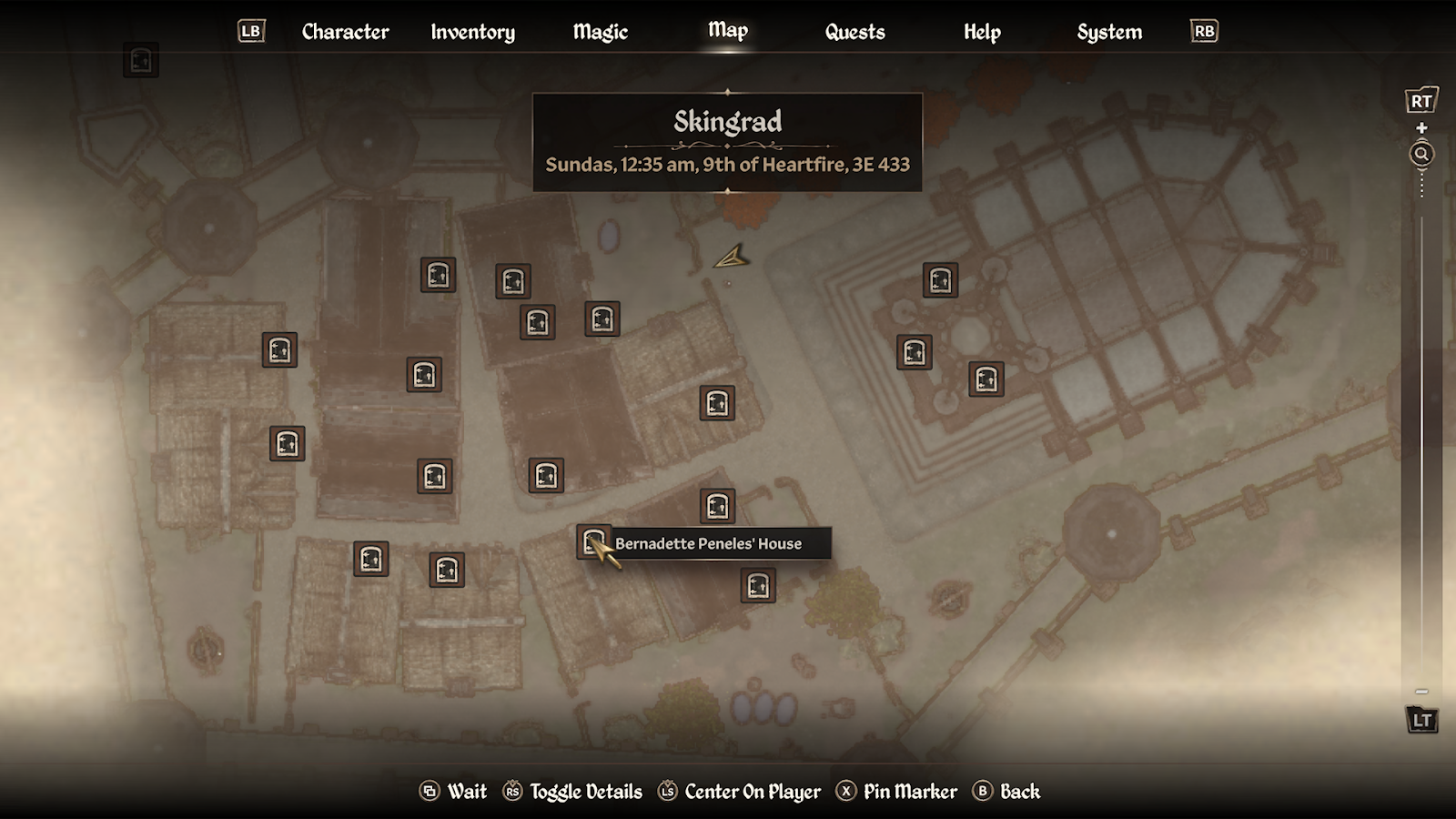 Бернадетта Пенелис – одна из трех жителей Скинграда, которых Глартир подозревает в слежке за ним в квесте «Паранойя». Она живет в доме прямо напротив дома Глартира, на южной стороне Скинграда, между домами Тамики и Уураса Пастуха.