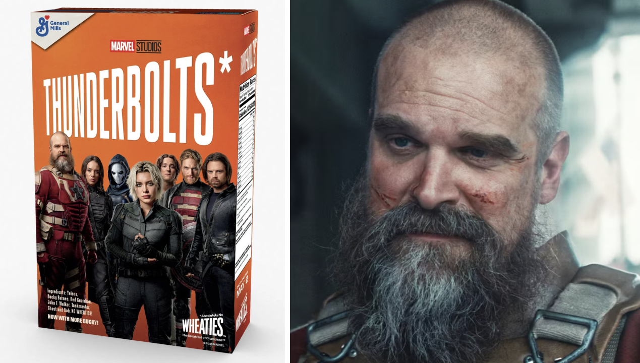 Красный Страж в супермаркете находит коробки с хлопьями Wheaties, на которых изображен он и все Громовержцы. Алексей Шостаков гордится этим и пытается всучить хлопья случайной покупательнице. Женщина не очень-то заинтересована и, похоже, не понимает, почему к ней назойливо пристал какой-то бородатый мужик. Покупательница сдается и принимает коробку, но затем втихаря выкладывает ее обратно и спешно уходит.
