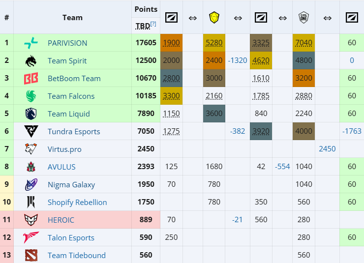 И Tundra прекрасно знает, что делает. Решившись на отдых вместо изнурительного двухнедельного турнира, команда лишь временно потеряла стопроцентный шанс поехать в Эр-Рияд. Посмотрим на текущую таблицу EPT: