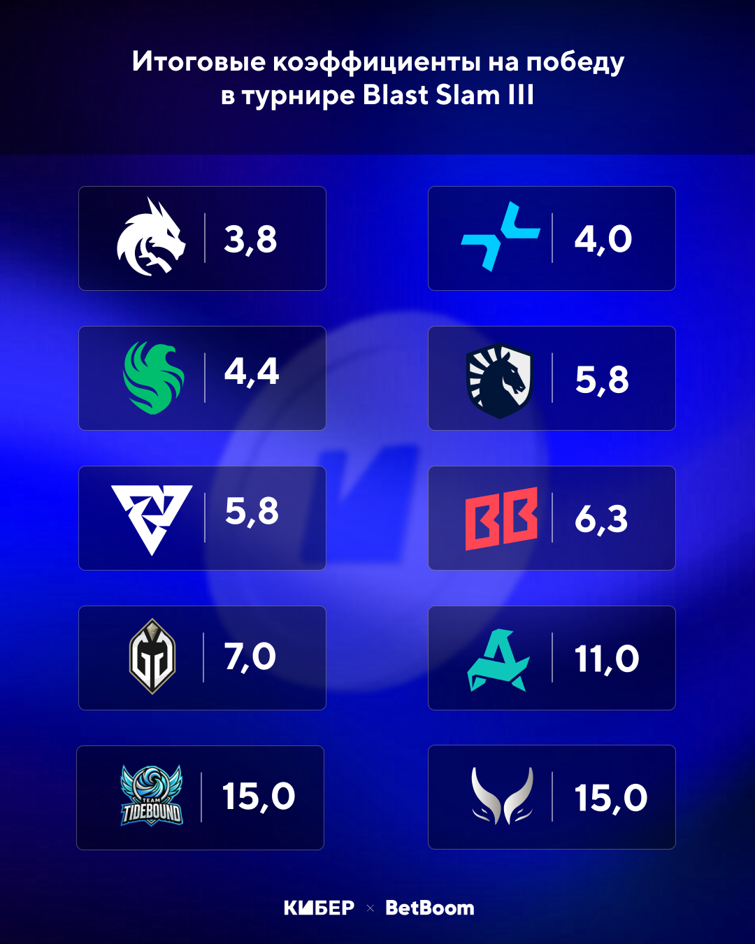 Коэффициент на победу от BetBoom – 15.