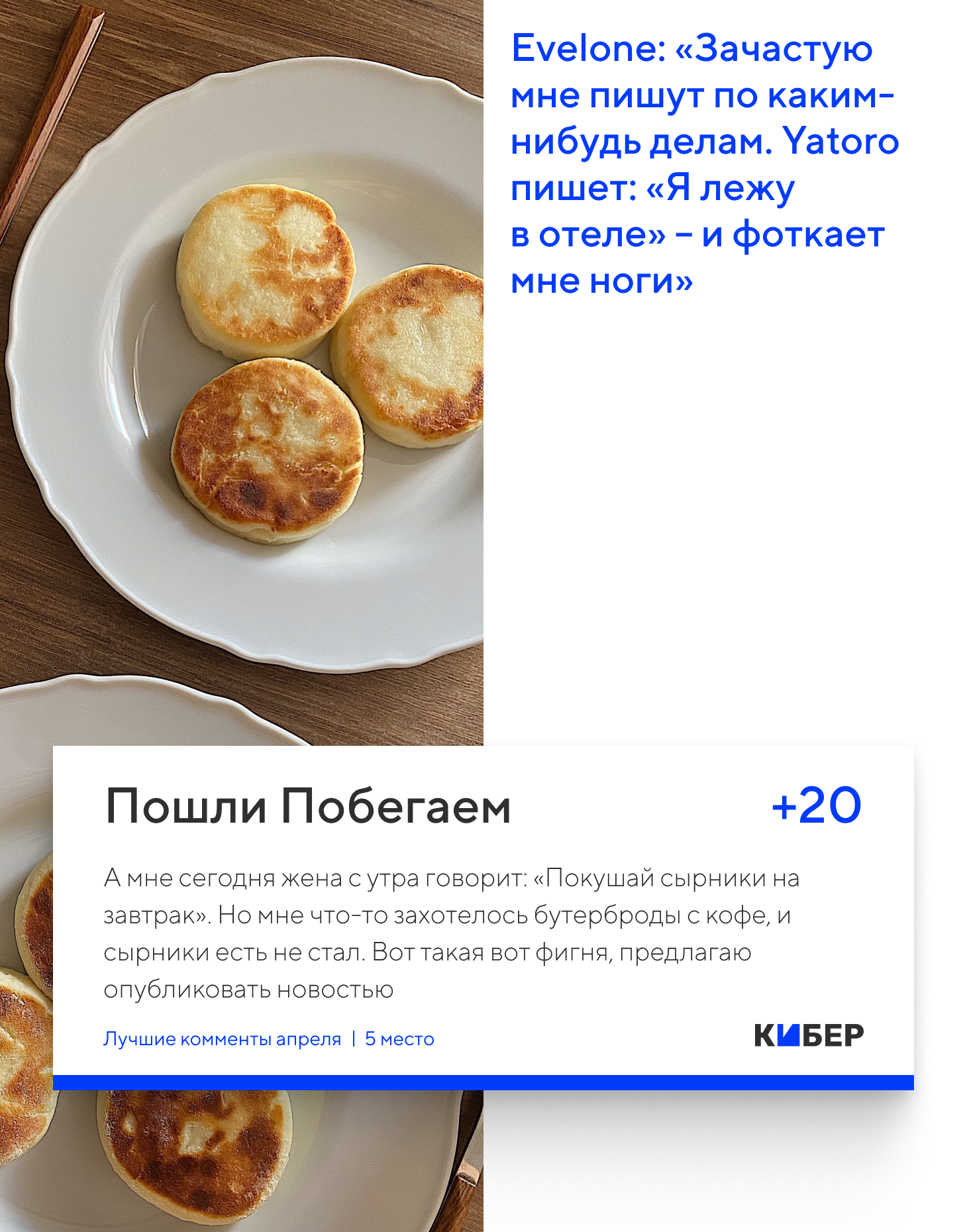«А мне жена говорит: «Покушай сырники на завтрак». Предлагаю опубликовать». Лучшие комменты апреля
