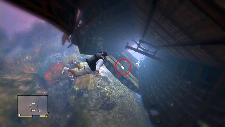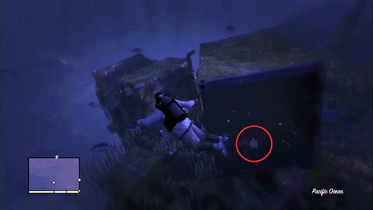 Пятый кейс находится к югу от порта Лос-Сантоса. Спуститесь на дно и найдите обломки затонувшего танкера. Внутри конструкции и лежит кейс. Лучше использовать снаряжение для дайвинга, чтобы без лишних сложностей добраться до цели.