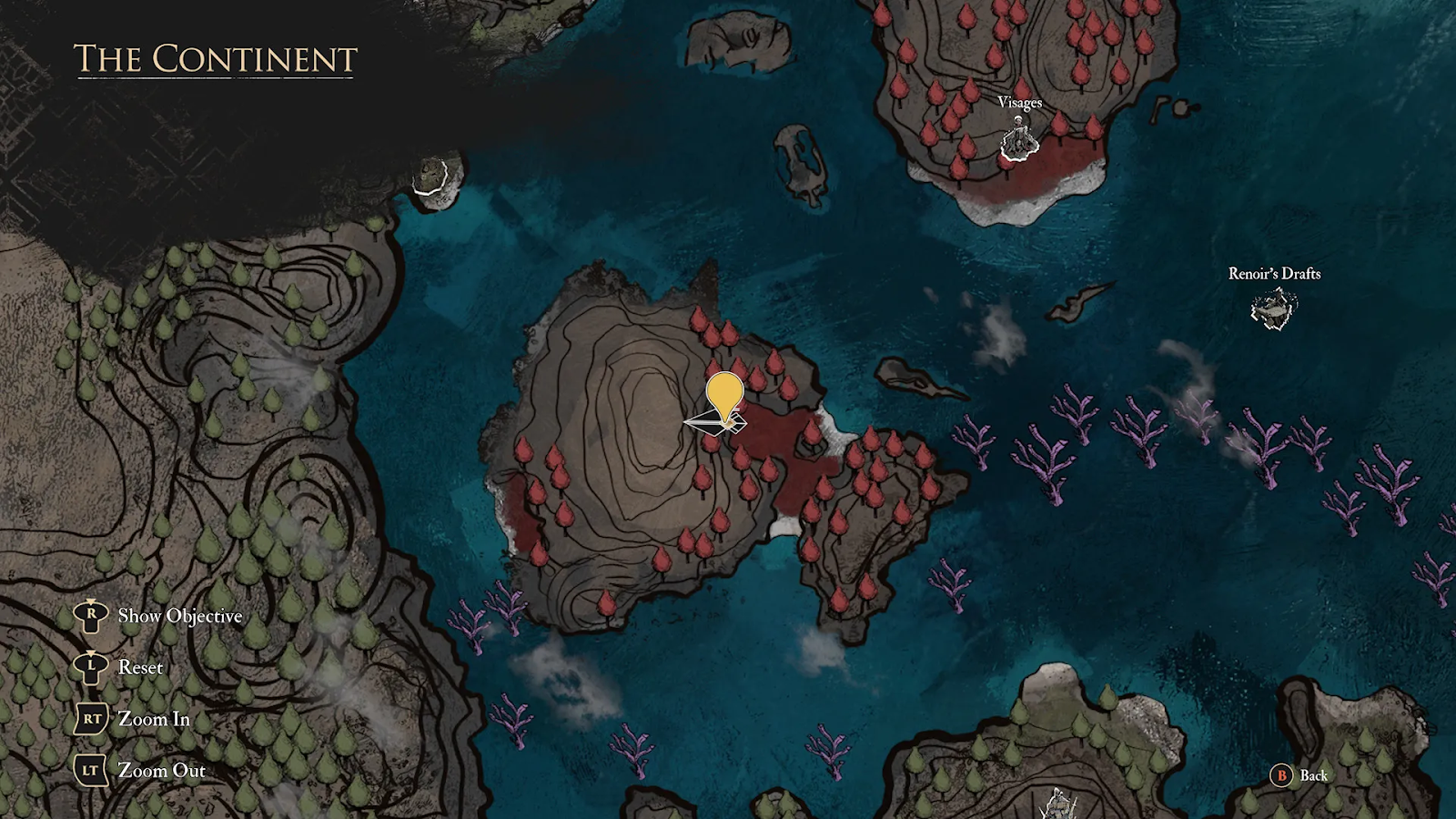 Шестой жестраль можно найти на Красном острове, расположенном юго-западнее от Визажей. Чтобы попасть туда, нужно будет плавать, так что позаботьтесь о навыке плавания у Эскье. Оказавшись на острове, направляйтесь к статуям лиц, которые будут служить ориентирами. Это довольно заметная часть ландшафта, так что не ошибетесь.