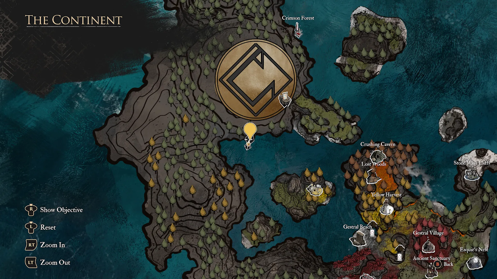Третий потерянный жестраль становится доступен после начала второго акта, когда Эскье наконец-то учится плавать. Без этой способности до нужного места не добраться, так что не торопитесь – ждите сюжетного апгрейда. Как только плавание открыто, двигайтесь на восток от Желтого урожая и ищите небольшой остров рядом с подземельем Белое дерево.