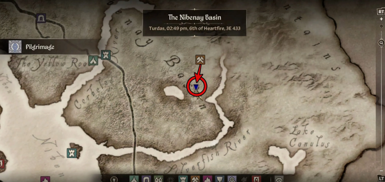 Из-за своего расположения вдали от цивилизации, Кинарет считается одним из самых труднодоступных святилищ. Оно расположено на реке Silverfish River, слегка отклоненной от направления реки на север. Советуем искать ориентир по крупной букве «I» в надписи «Basin» на карте.