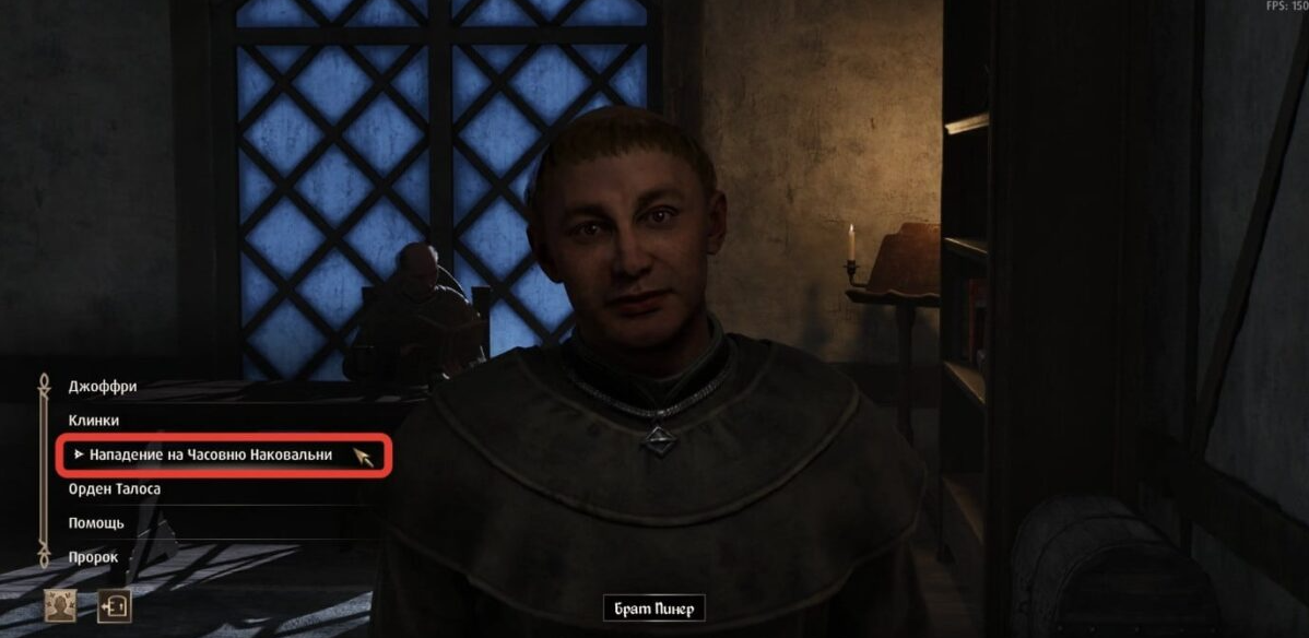 - Отправляйтесь в Приорат Вейнон рядом с городом Чейдинхол. Здесь вы встретите брата Питера. Начните разговор и упомяните инцидент в Анвиле, выбрав фразу: «Нападении на часовню».