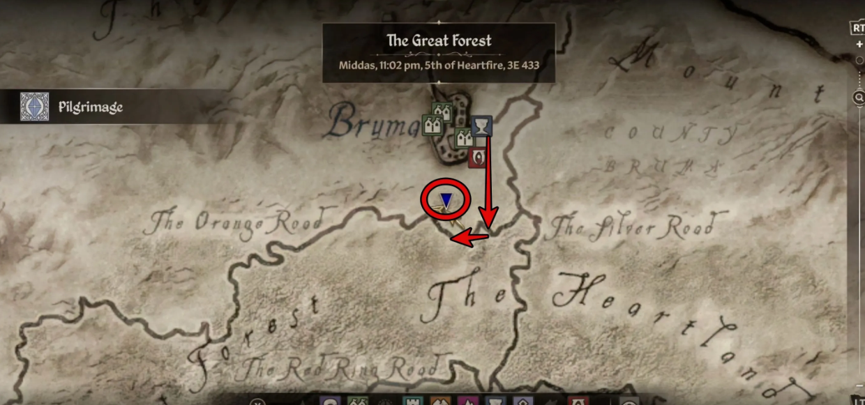 Святилище находится вблизи города Брюма. Переместитесь к конюшне Wild Eye Stables, затем пройдите прямо на юг до дороги Orange Road. Затем сверните на запад и поднимитесь по каменным ступеням слева от дороги, ведущие к самому храму.
