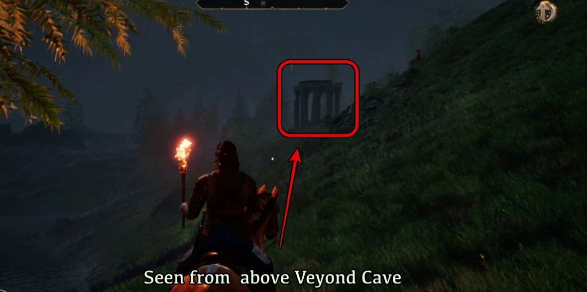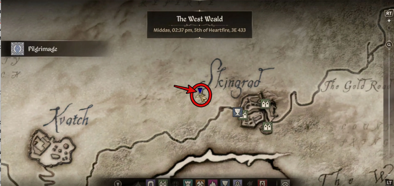 Быстро телепортируйтесь к конюшне Grateful Pass Stables, расположенной на западе от Сканграда. Само святилище находится буквально неподалеку, справа от конюшен.