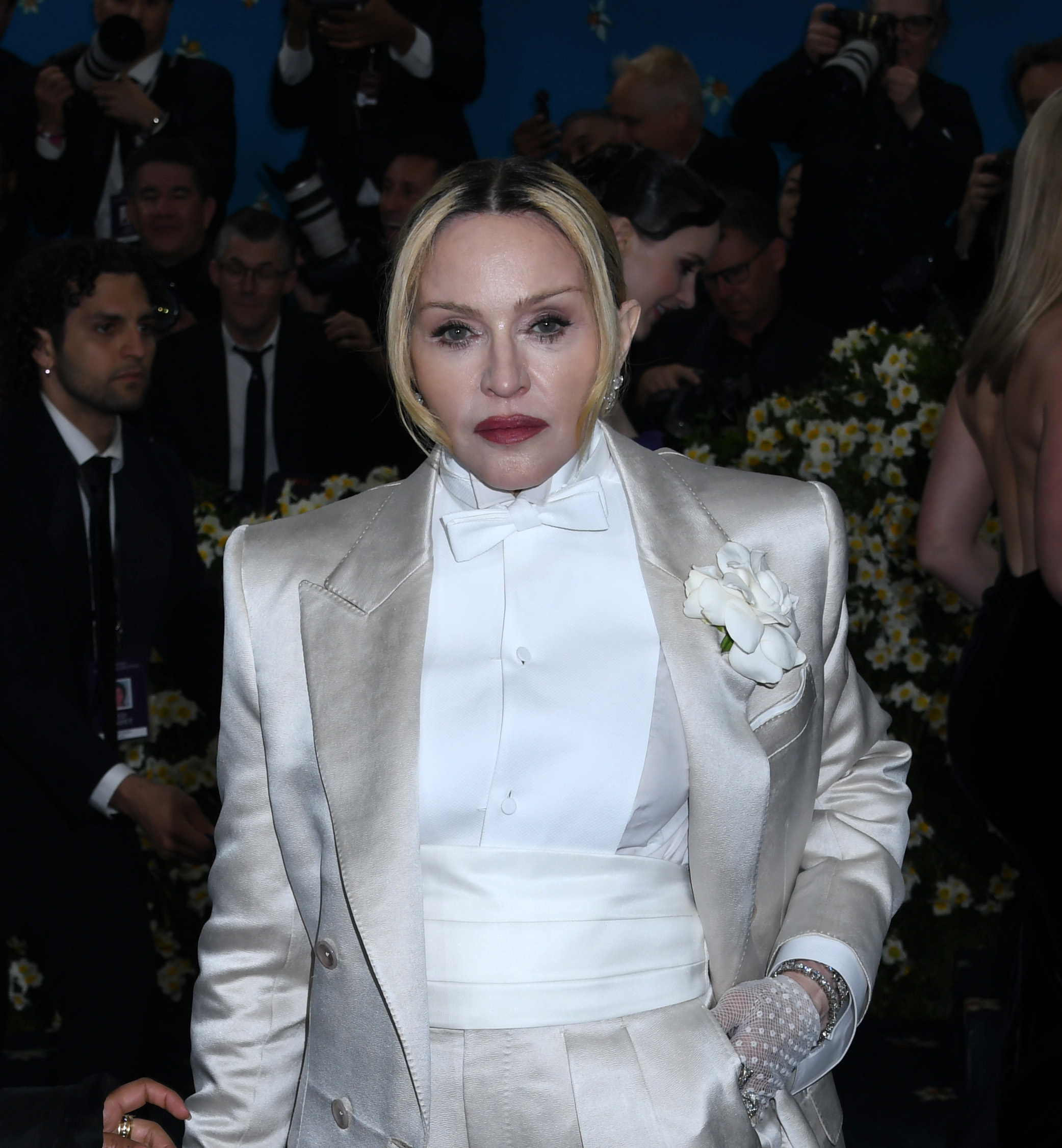 Мадонна пришла в светлых тонах и с огромной сигарой в руке! Легенда потом еще и прикурила, но показывать мы это не будем.