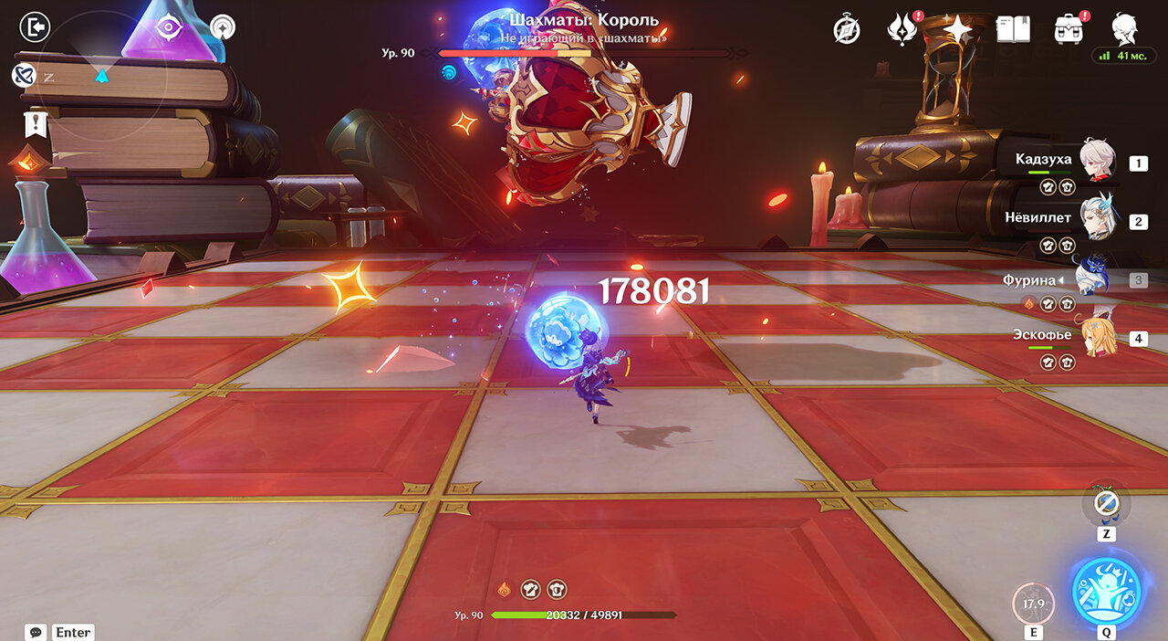 У Шахмат две фазы: первую придумала Алиса, вторую – наставница Моны Барбелот. У босса высокие резисты к Гидро и Электро урону, для остальных стихий цифры стандартные.