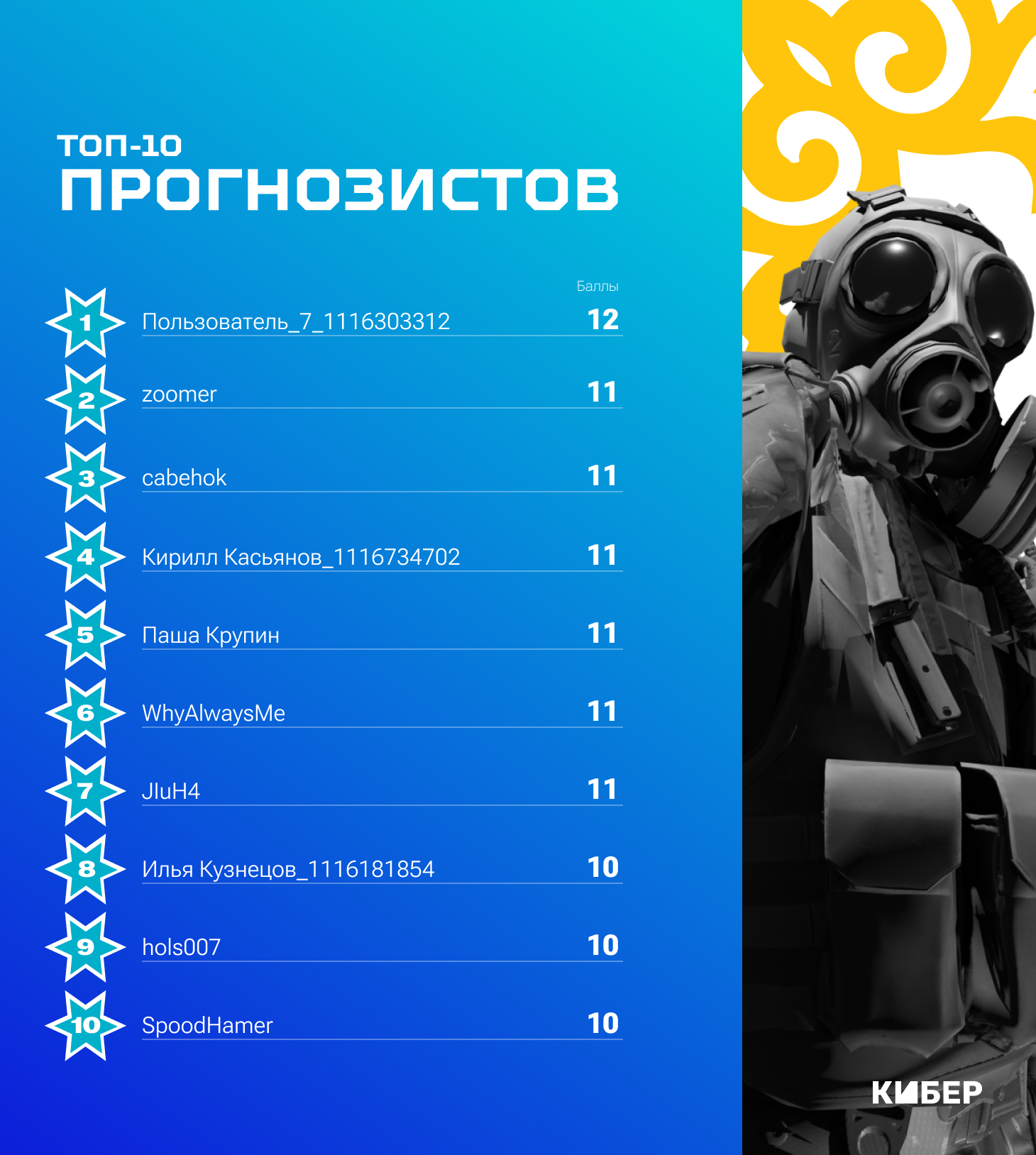 Привет! 10 мая стартовал PGL Astana 2025. К турниру Кибер снова запустил конкурс прогнозов: пишите в комментариях предикты на матчи турнира, зарабатывайте баллы за верные прогнозы и выигрывайте призы.