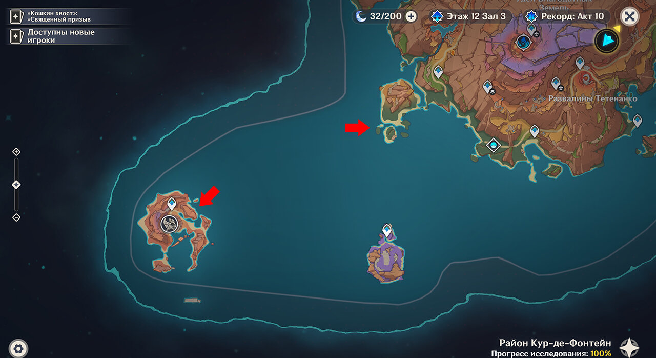 Он расположен на самом юго-западе карты Натлана. Возьмите силу завриана и плывите к другому берегу, либо возьмите героев, умеющих ходить по воде – Фурину, Кокоми, Крио персонажей и так далее.