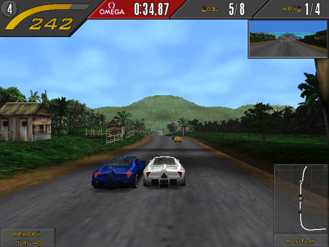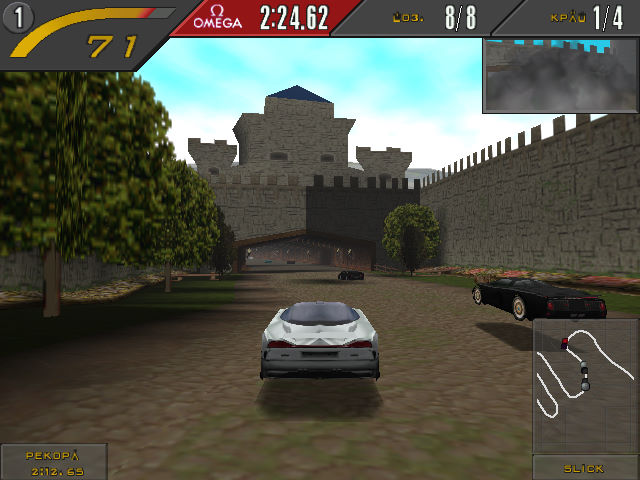 Ну и плюс, та же проблема, что была и у The Need for Speed – игры слишком мало, даже в SE. Пройти турнир, из любопытства покататься на каждой из 12 машинок (+ 2 бонусных) по каждой из 7 трасс, порубаться в самопальный мультиплеер, поизучать энциклопедию, посмотреть ролики и, в общем-то, всё. Другое дело, что в The Need for Speed ты вспоминал об этом сильно позже, чем здесь – потому что ездить было интересно, ИИ соперников был сложнее, а местный турнир нельзя было выиграть левой задней. Здесь же, после затухания эффекта новизны, скука накатывает буквально на второй час (если режим «Аркада» вас ещё раньше не отторгнет).