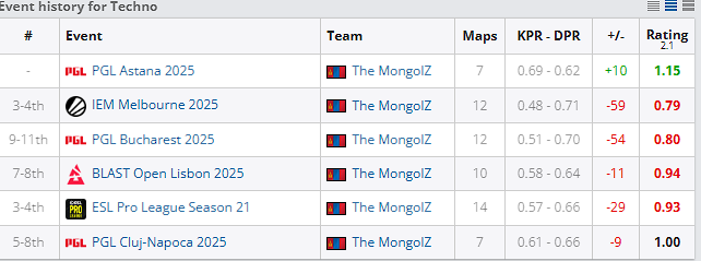 Последние поражения Монголов были от Vitality (0:2 IEM Melbourne 2025), Mouz (0:IEM Melbourne 2025) и Falcons (1:2 PGL Bucharest 2025). Все команды сейчас входят вместе в топ 4 мира.