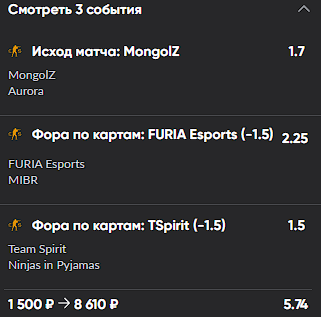 Экспресс#2. Общая Монголы + Фурия + Спирит 2-0 кф 3.44