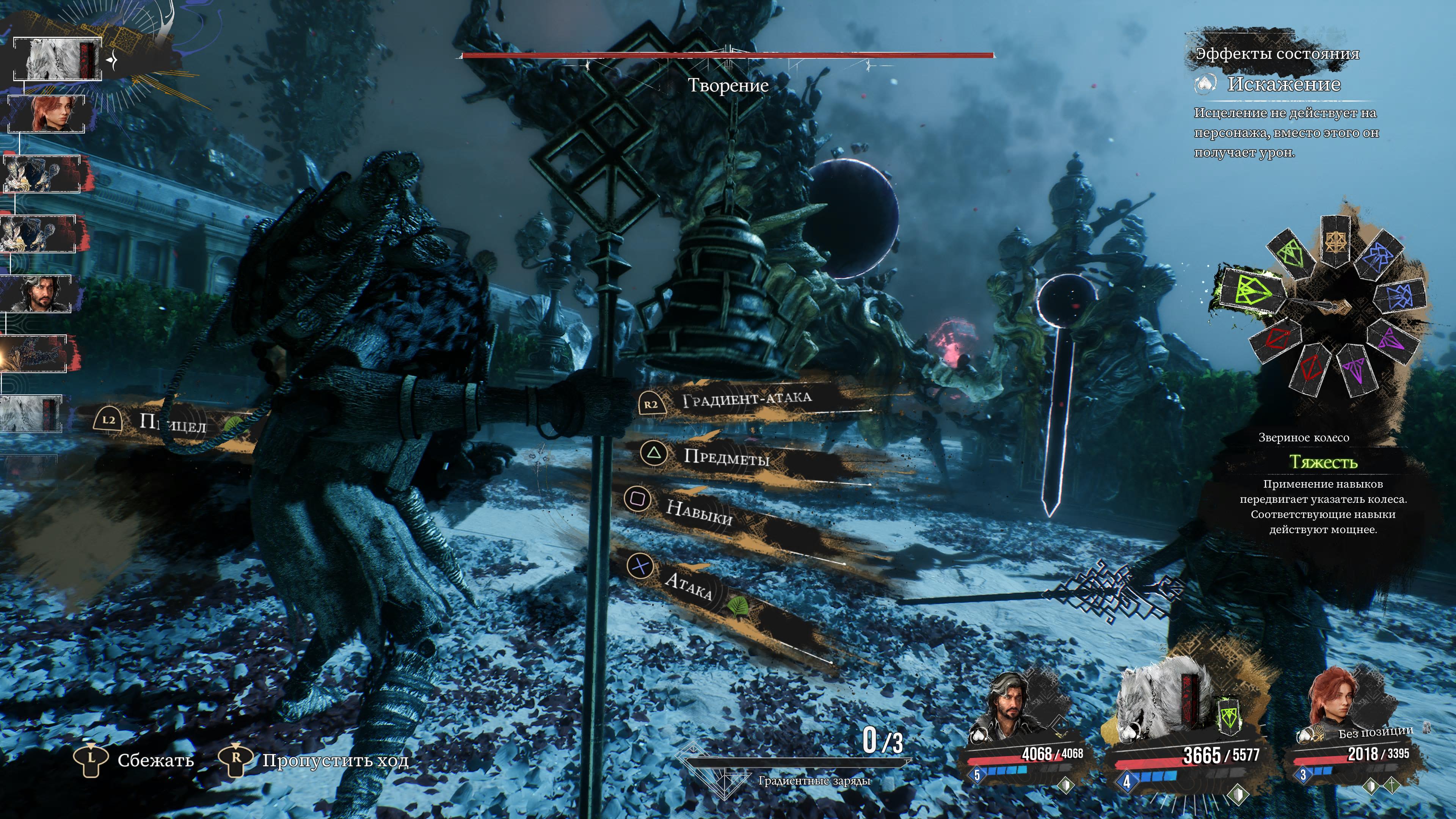 После применения способности звериное колесо прокручивается по часовой стрелке на количество делений, указанное на карточке навыка рядом со стоимостью в очках действия (ОД). После этого стрелка будет указывать уже на маску с другим цветом, соответствующую другой группе навыков.