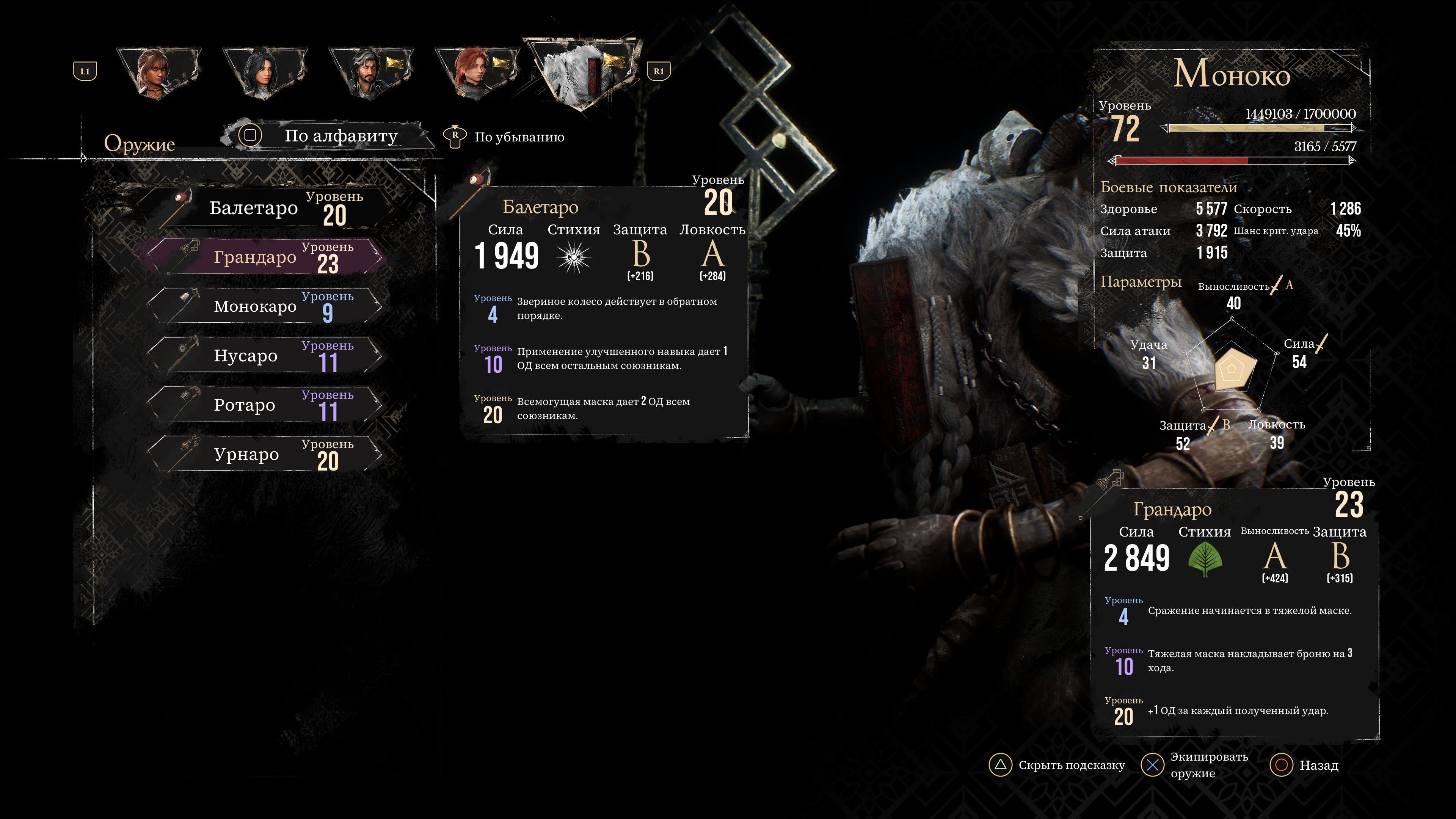 Оружие Нусаро увеличивает урон всех улучшенных навыков Моноко на 30%. Несмотря на высокую стоимость навыков, источников восстановления ОД у него предостаточно, так что нехватка очков действия – редкая проблема.
