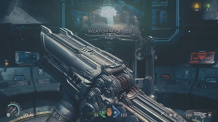 «Измельчитель» – универсальный пулемет, стреляющий зазубренными шипами, который эффективно справляется с демонами как на ближней, так и на дальней дистанции. Благодаря широкой зоне поражения и нарастающей скорострельности с увеличением урона от шрапнели, пулемет отлично подходит для контроля больших групп противников. Магазин вмещает 120 патронов, а пополнение боезапаса происходит за счет трофеев с поверженных демонов.