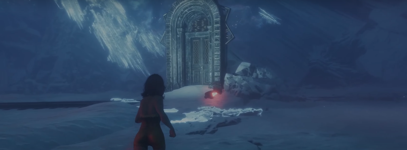 Одна из наиболее необычных дверей связана с локацией «Холст» — парящим островом в северной части карты, который становится доступен ближе к концу игры. Найдите большую живописную картину, подвешенную на платформе, и взаимодействуйте с ней — это запустит специальное событие.