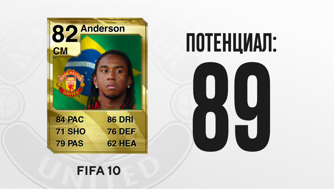 В конце 2000-х в «МЮ» началась эпоха бразильских талантов. Невысокий и крайне техничный центральный хавбек Андерсон впечатлил европейские клубы на юниорском чемпионате мира 2005 года, где дошел со сборной U-17 до финала. Уже зимой бразилец уехал в «Порту», а спустя сезон «Юнайтед» выложил за него 31,5 млн евро.