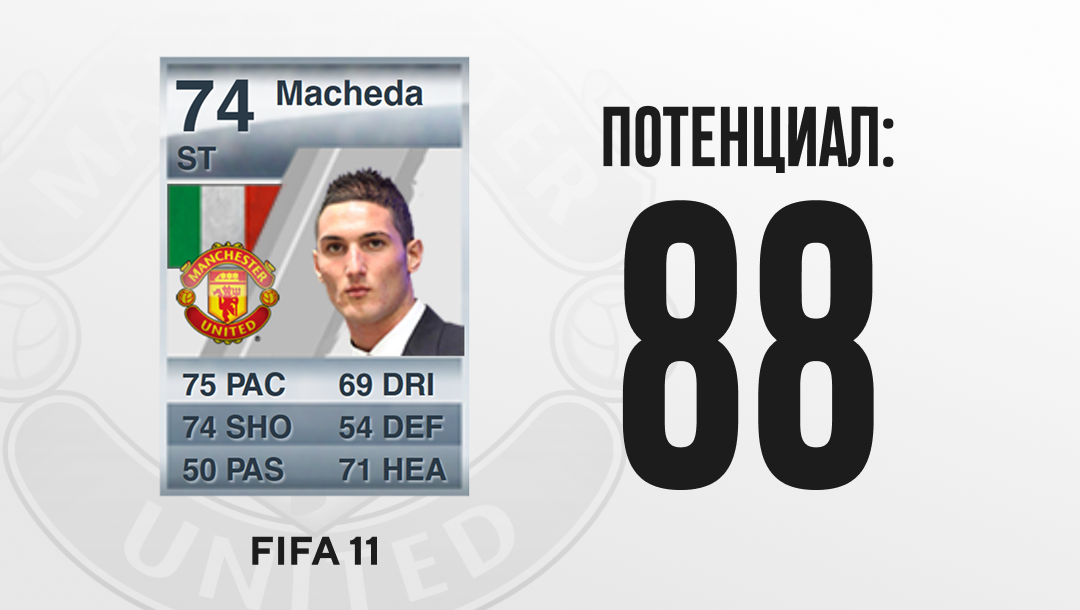 Федерико Македа – очередной пример обманчивости юношеского футбола. Молодой итальянский нападающий выступал за сборную U-16 и в 16 лет перешел из академии «Лацио» в «Юнайтед». В сезоне-2008/09 Македа эффектно дебютировал за основную команду голами с замены «Астон Вилле» и «Сандерленду», но не мог вытеснить Уэйна Руни и Димитара Бербатова.