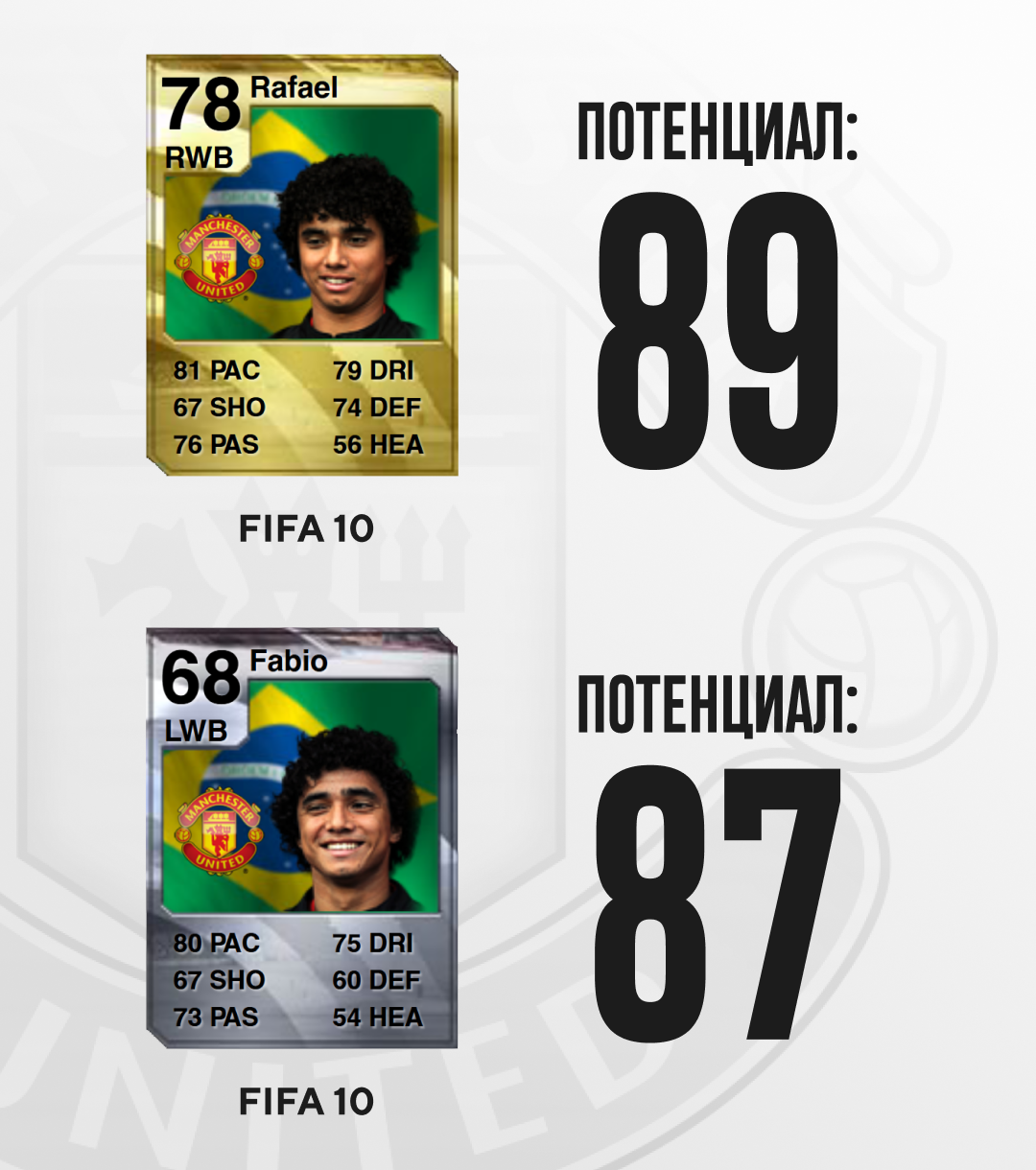Братья-близнецы Рафаэл и Фабио да Силва попали в «МЮ» из молодежки «Флуминенсе». Скауты «красных дьяволов» следили за ними несколько лет и выхватили защитников у «Арсенала» и «Реала» в 2007 году, но дебюта пришлось подождать из-за возраста. Братья впервые сыграли за «Юнайтед» в товарищеской игре с «Питерборо» перед сезоном-2008/09 и впечатлили Алекса Фергюсона: «Молодые футболисты сыграли фантастически, а правый защитник Рафаэл стал для меня просто сенсацией. Я думаю, сегодня вечером мы получили доказательства, что к нам пришли очень хорошие футболисты».