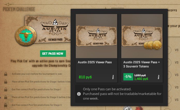 Вышел пропуск для мейджора в Остине! За турнир снова можно получить монетку, правда, путь до бриллиантовой награды стал еще сложнее.