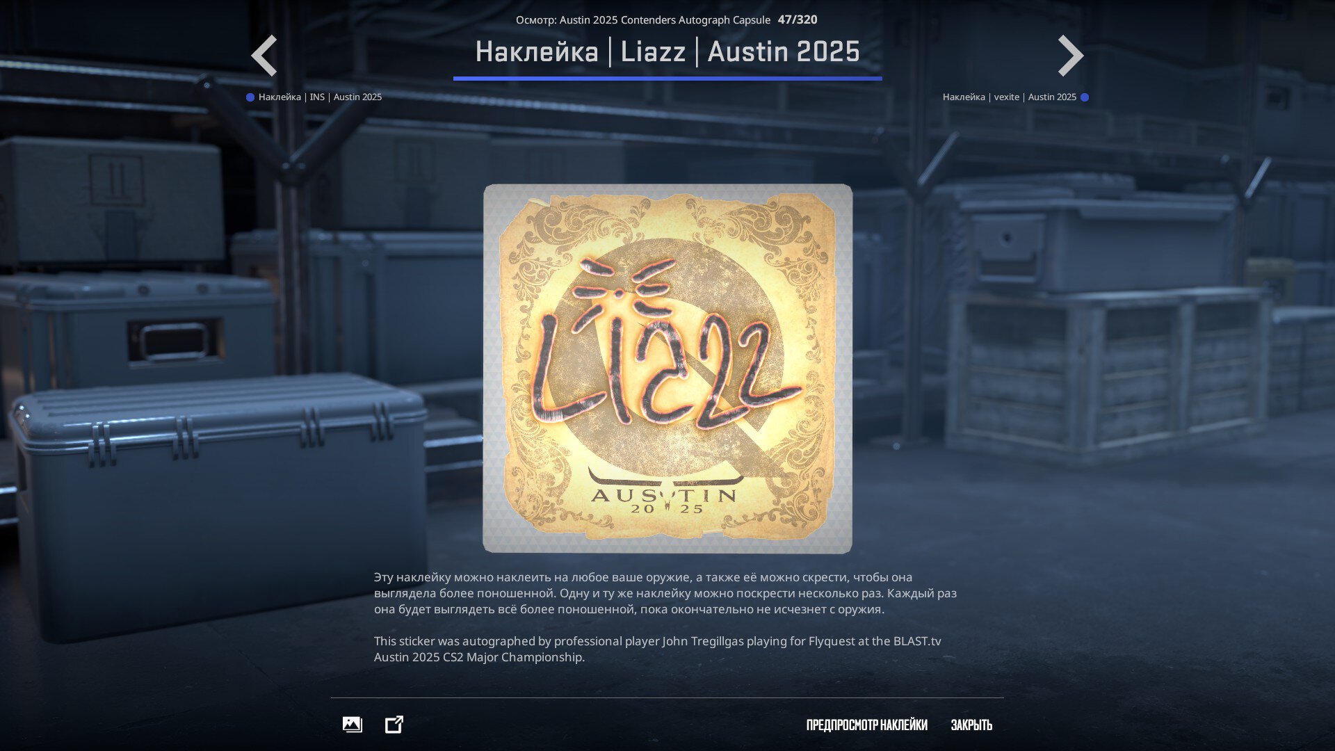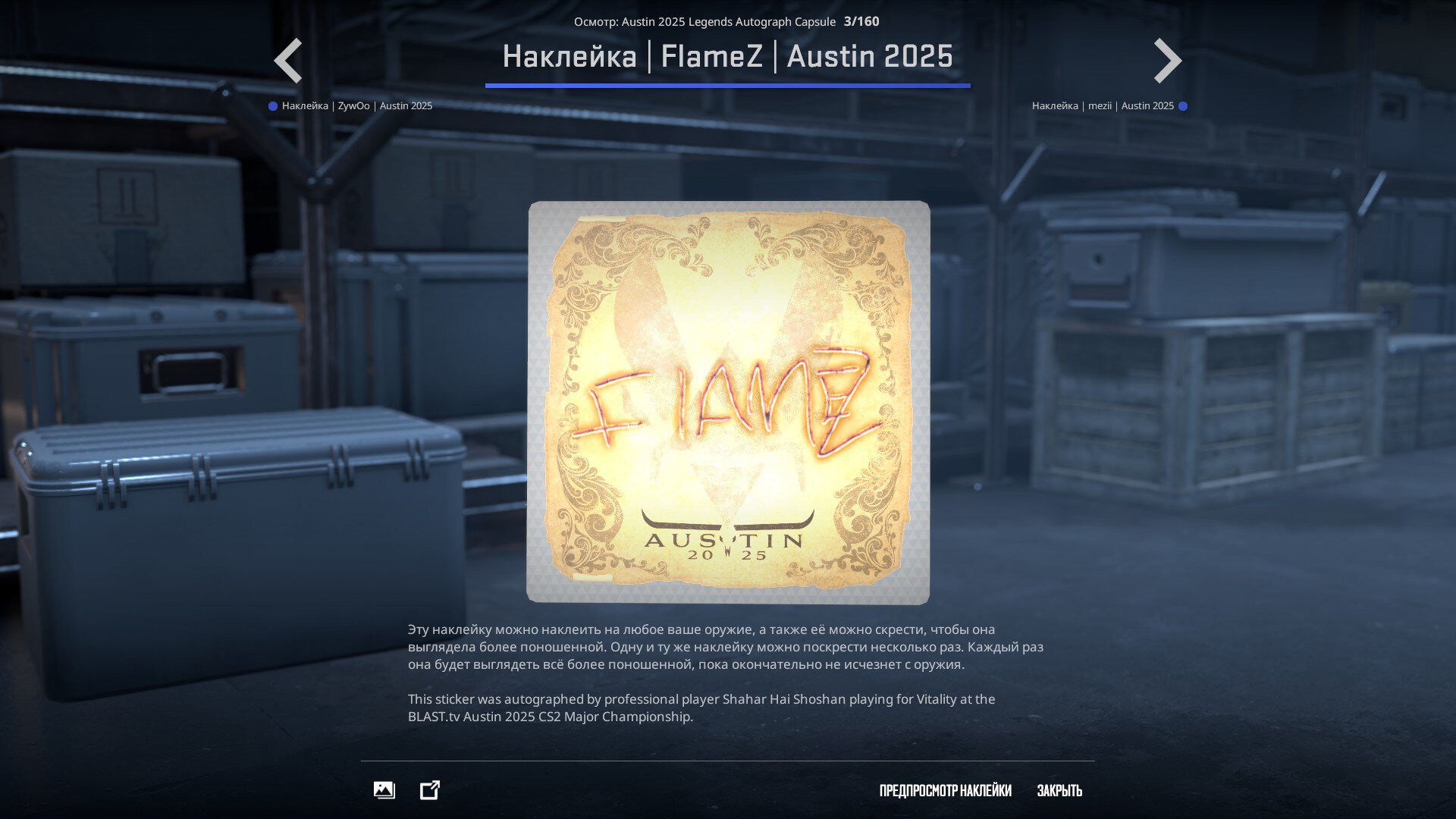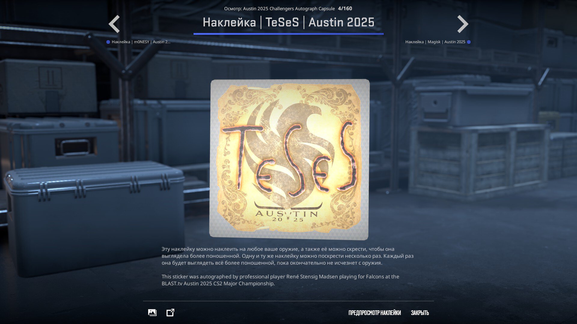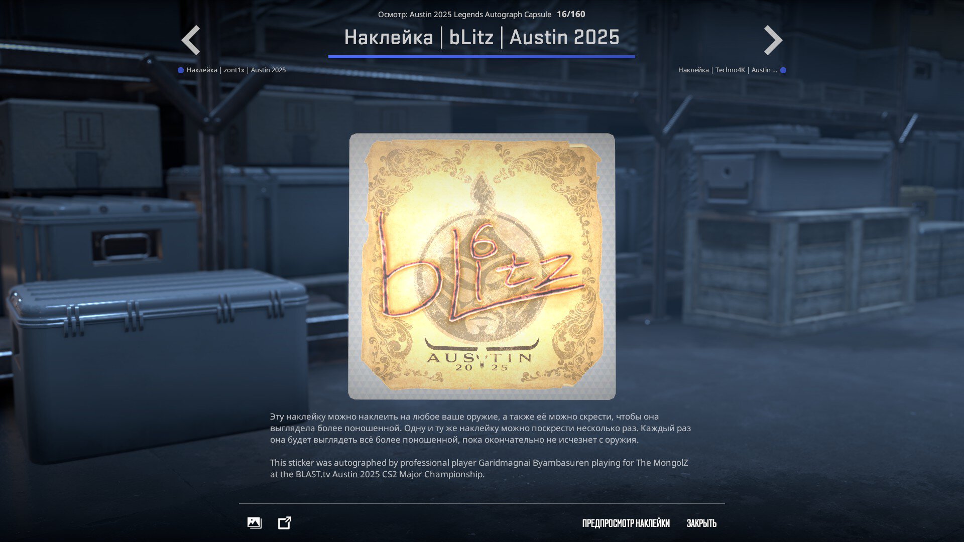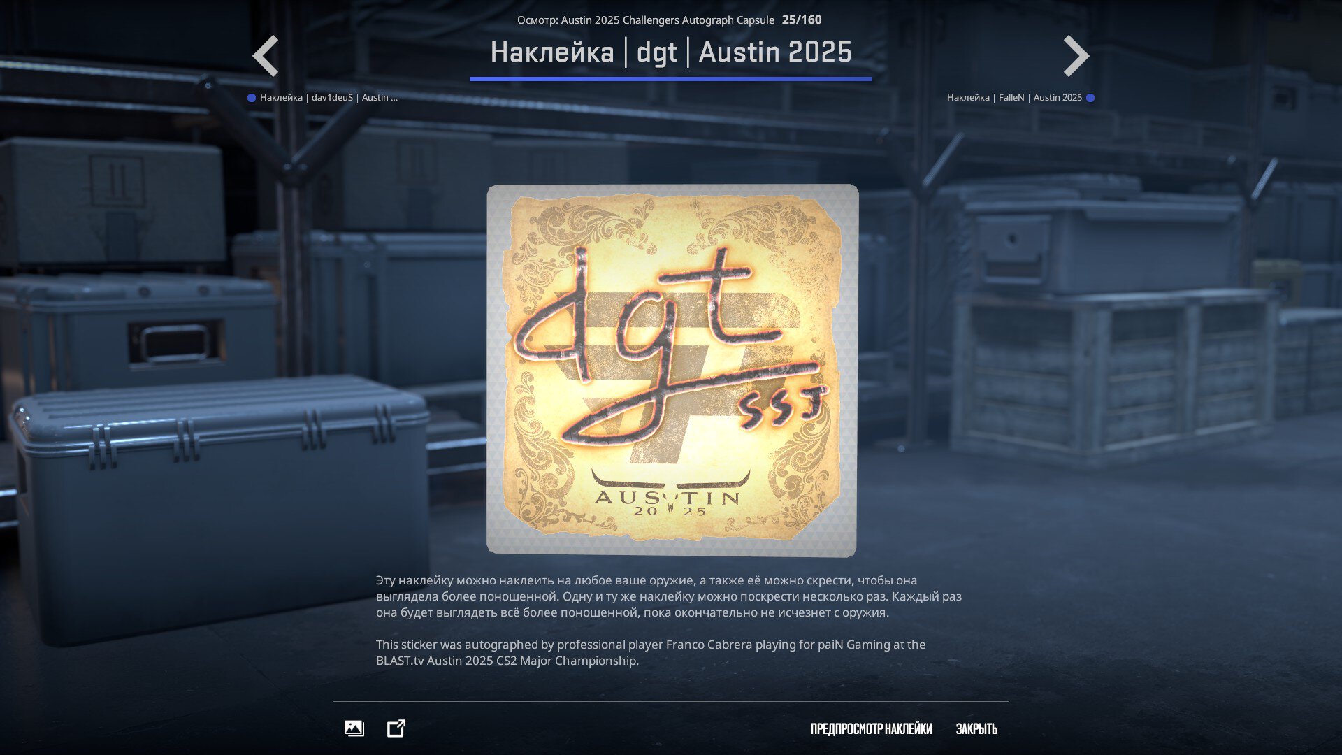 В CS 2 добавили предметы к BLAST Austin Major 2025, в том числе – автографы игроков. Они доступны в 4 качествах.